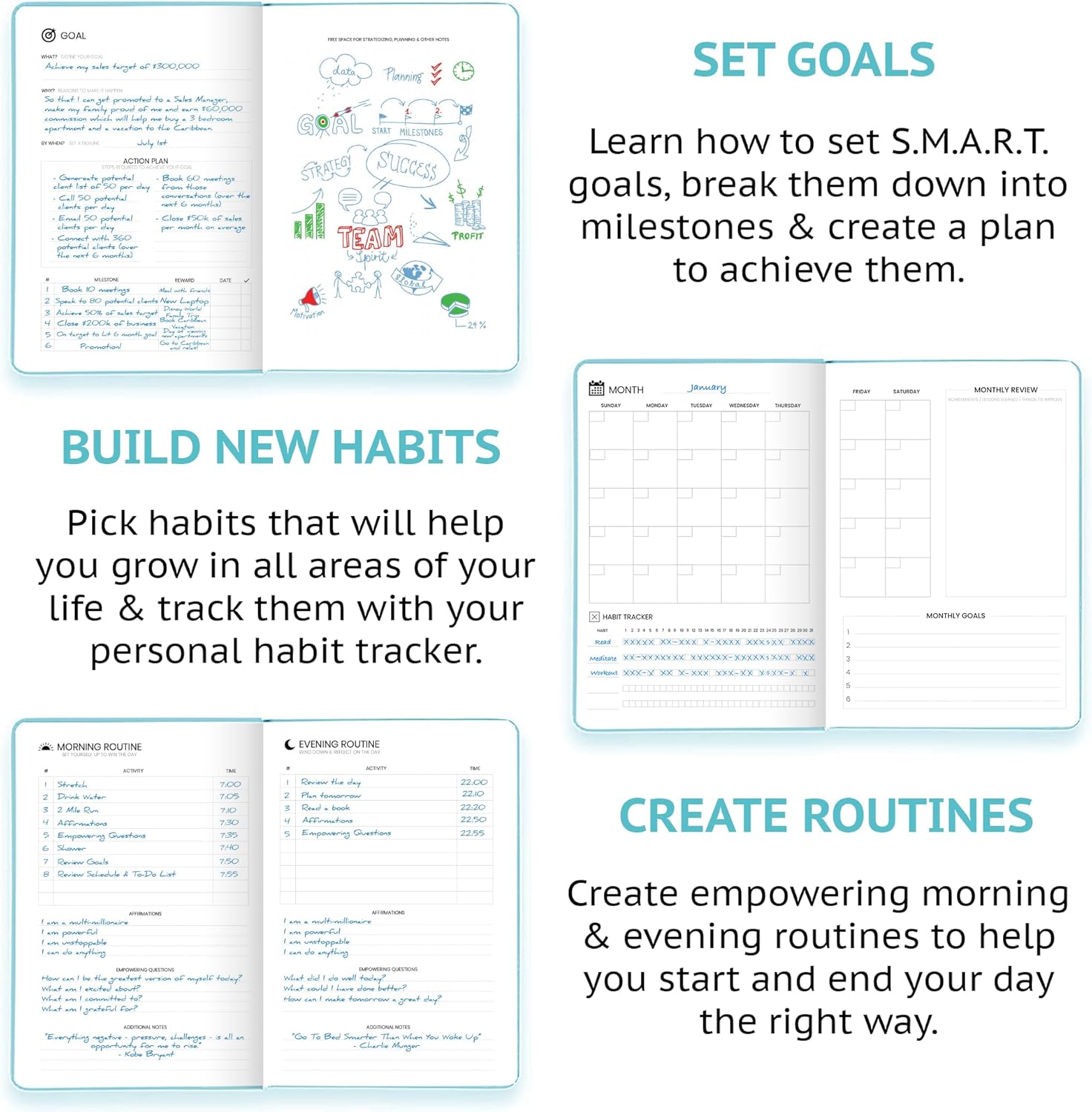 - STAY ALIGNED WITH YOUR GOALS – Use built-in goal-setting tools and review prompts to stay focused on long-term success—whether you’re managing business milestones, career growth, or personal development.