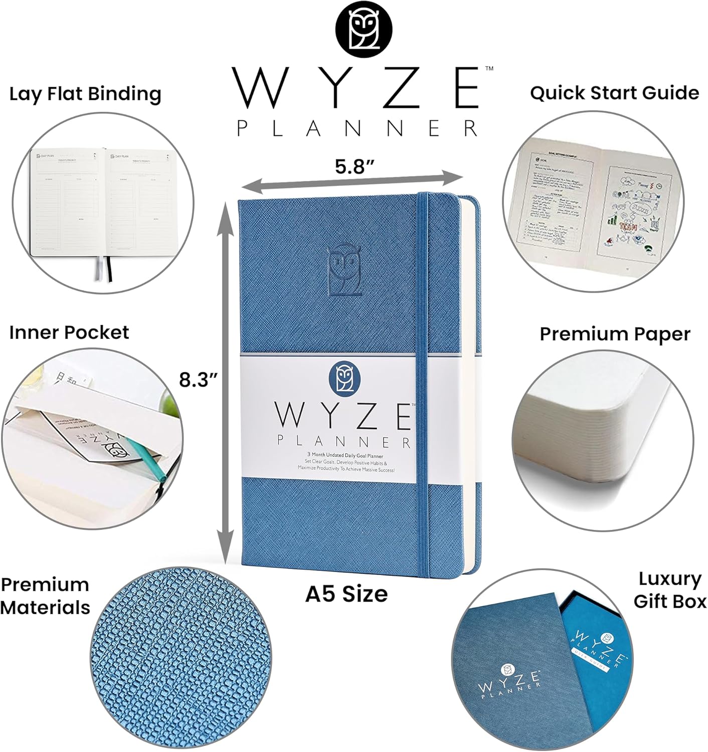 Undated Daily Planner – 3-Month A5 Productivity Organizer with Full Page Per Day, Hourly Schedule, Goal Setting, Habit Tracker, Weekly & Monthly Pages – Hardcover Time Management Notebook (Blue)
