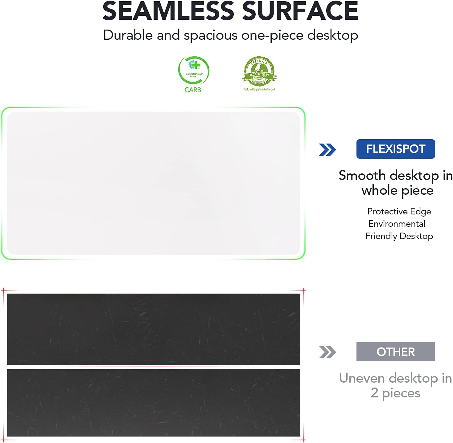 - 【COZY & ERGONOMIC WHOLE-PIECE WORKSPACE】 The spacious 55.1” x 27.5” whole-piece desktop offers ample room for two monitors and a laptop, allowing you to spread out and tackle your workday with ease.