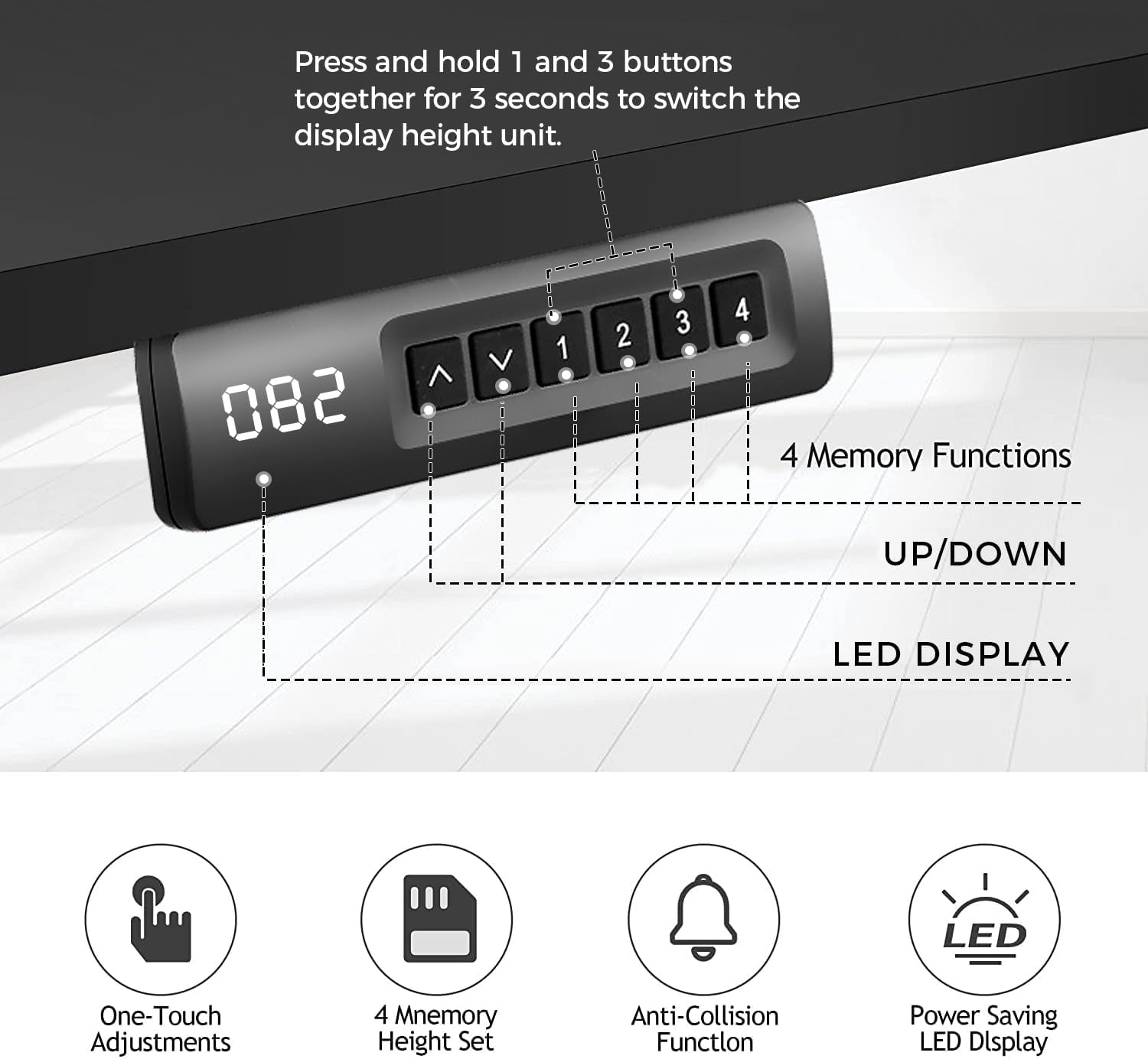 - 【Ergonomic Home Office Desk】- Prolonged sitting can strain your body, leading to back and neck issues. Our standing desk allows seamless transitions between sitting and standing with a single touch, reducing fatigue and enhancing focus