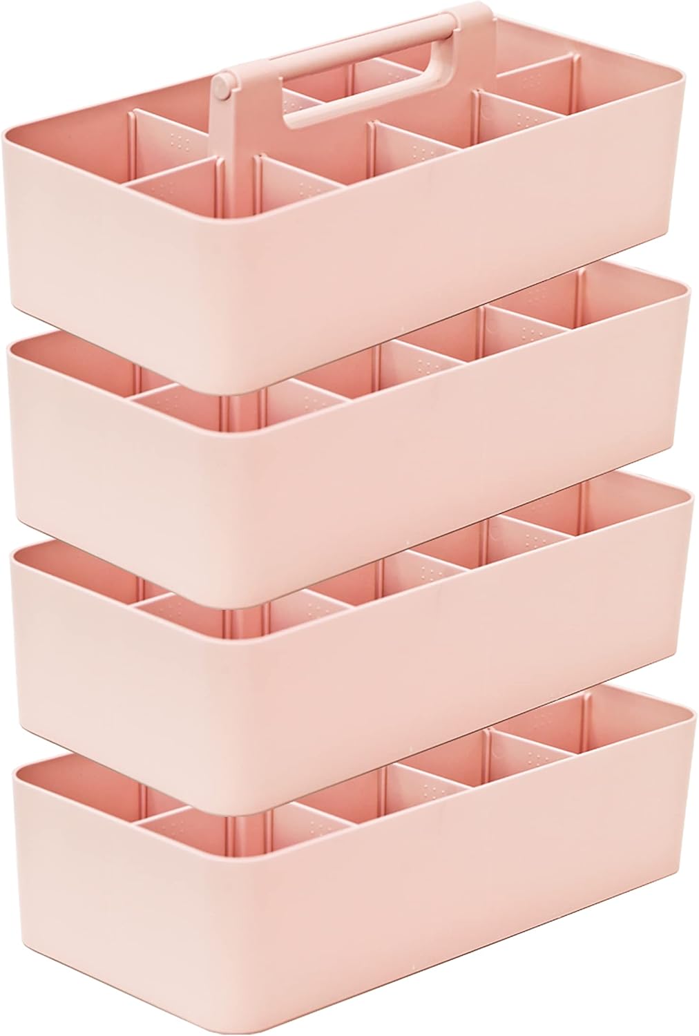 -Large Portable Caddy, DIY Dividers, 8 Compartments, School Home Business Organizer,Portable Basket with Handle Storage Organizer Modern Made in USA (4 PACK, Indie Pink)