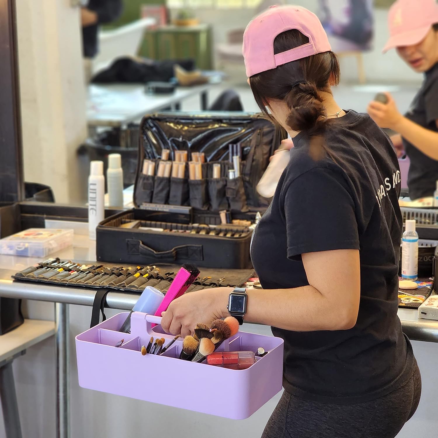 -Large Portable Caddy, DIY Dividers, 8 Compartments, Portable Basket with Handle Storage Organizer Modern Made in USA (4 PACK, Lavender)