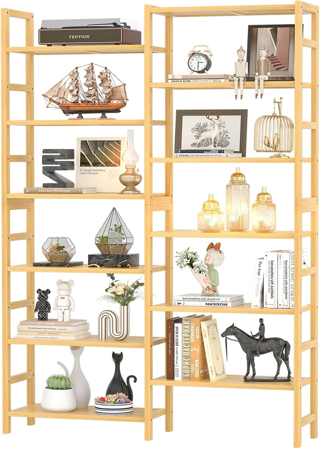 - Lightweight and Strong: The large bookshelf is made of superior bamboo, lightweight and durable. Thickened shelves and frames provide high load-bearing capacity. Varnished surface of the wide bookcase is smooth and burr-free. Natural wood aesthetic fits your decor in any room.