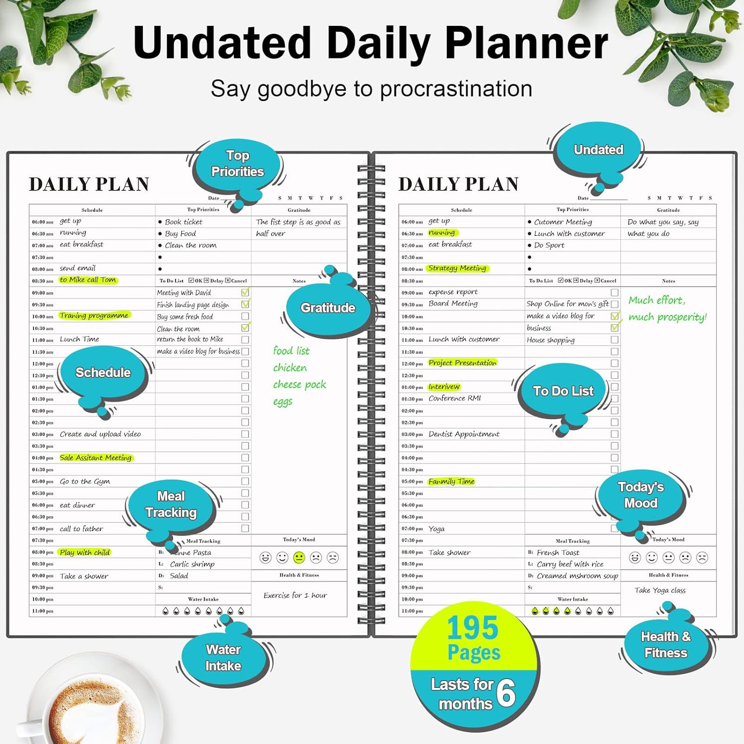 - Start Plan Anytime: The day planner is undated,if you miss a day or you are off of work that day you donโt need to waste a page, start to use this schedule planner any time.