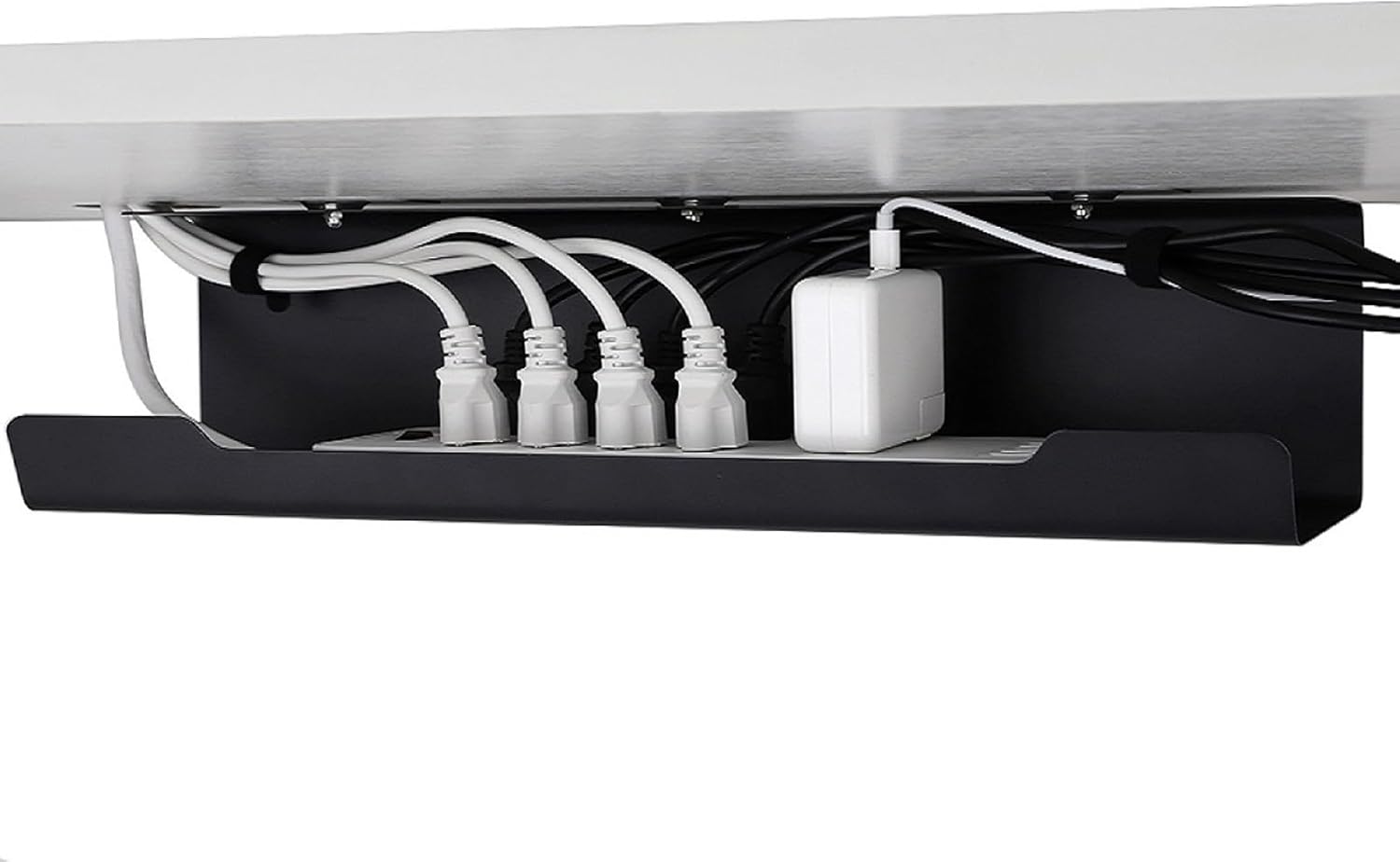 - Home Office Accessories:Are you tired of tangled cables?This cable tray is specially designed for under-desk storage,can hide all cables and providing clean look.Install the cable management tray under your desk to hold power bricks,cable bundles,surge protectors and anything you need.Hiding power strip and loose cables not only frees up desktop and floor space also prevents tripping hazards.