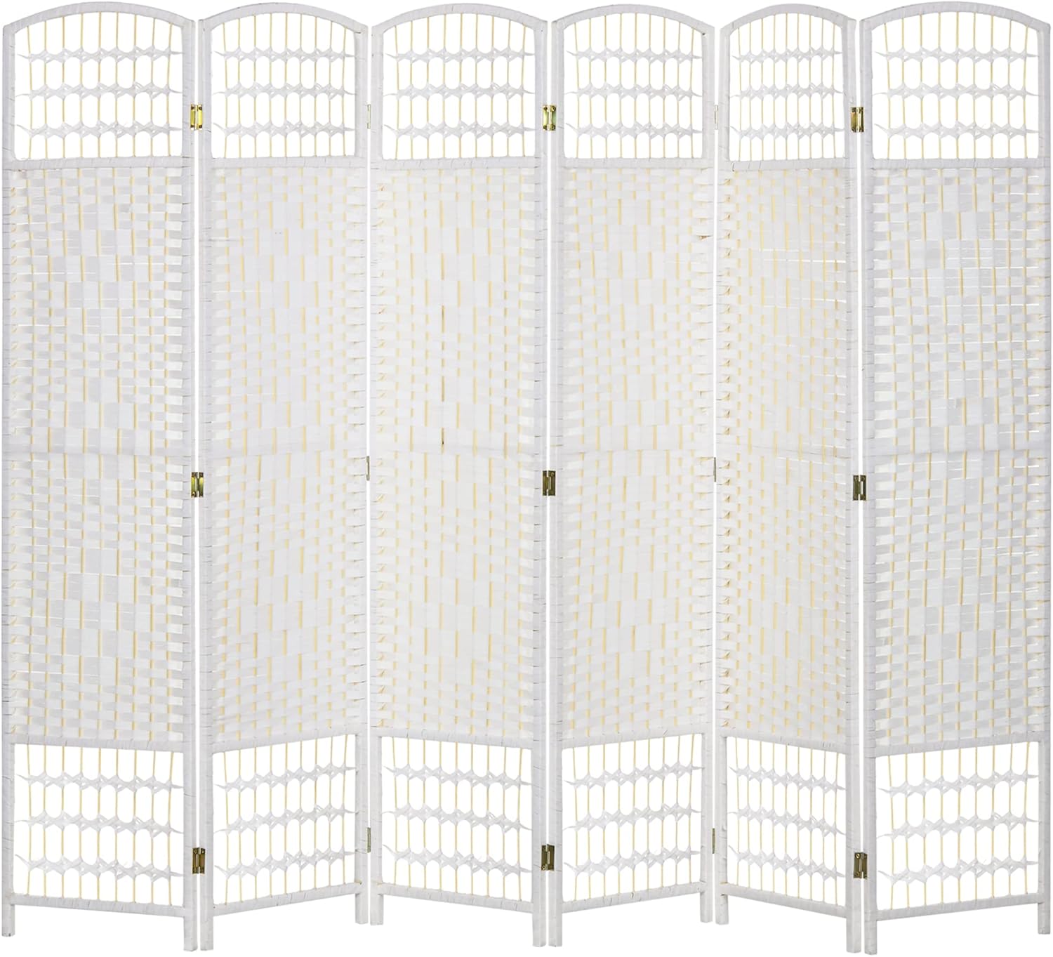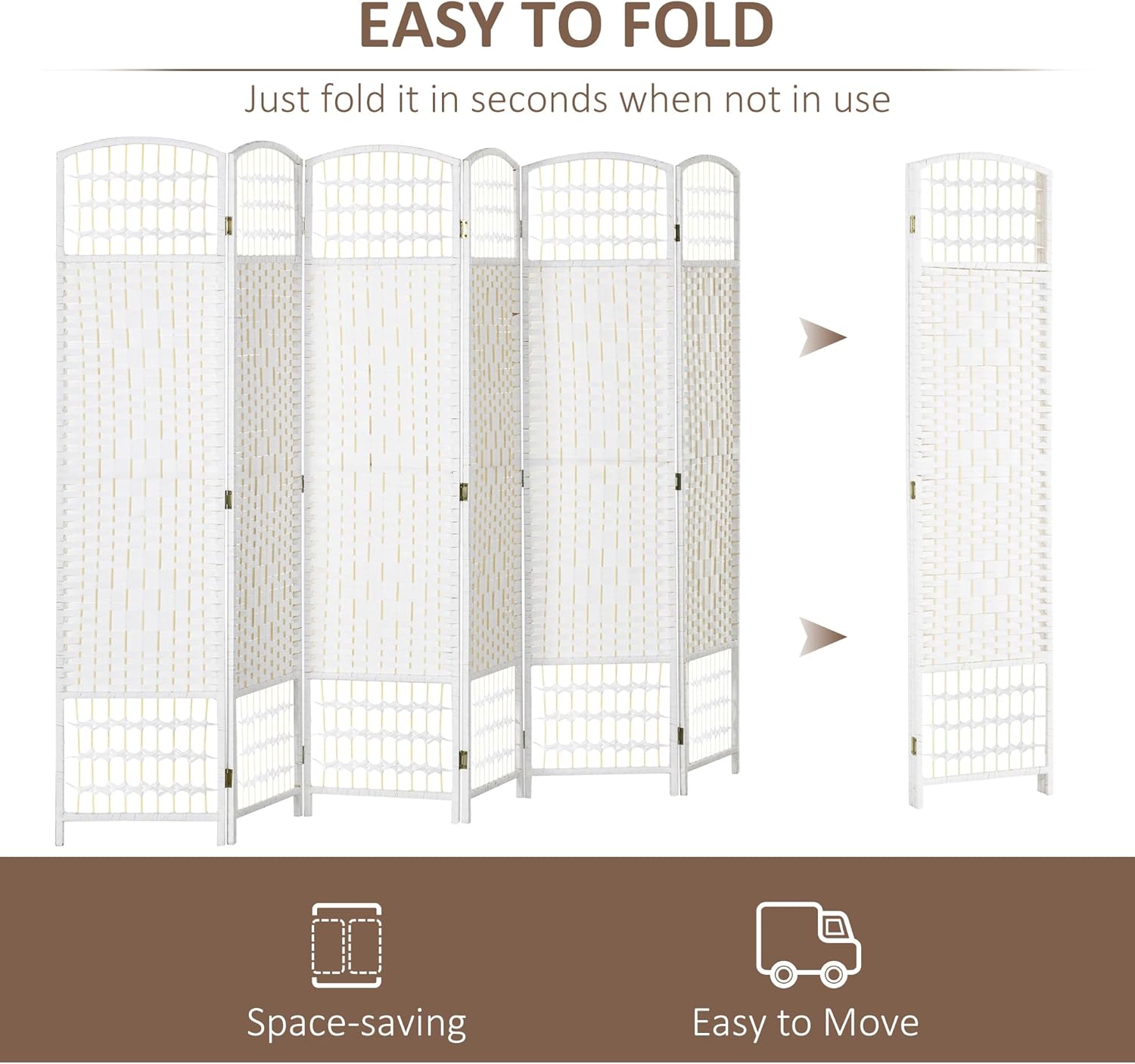 HOMCOM 6 Panel Room Divider, Folding Privacy Screen, 5.6' Room Separator, Wave Fiber Freestanding Partition Wall Divider, White