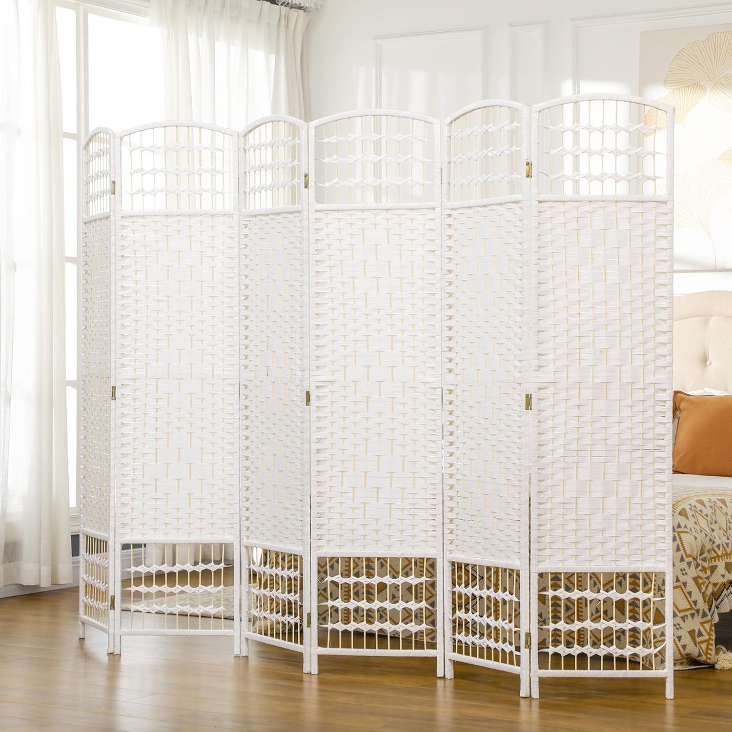 - Hand-Woven Style: Built with a wood frame featuring a stylish woven pattern crafted from paper rope and bamboo sticks, and decorated with a bent wood arched top, our wall divider brings a natural tone to your living room, bedroom, or home office.