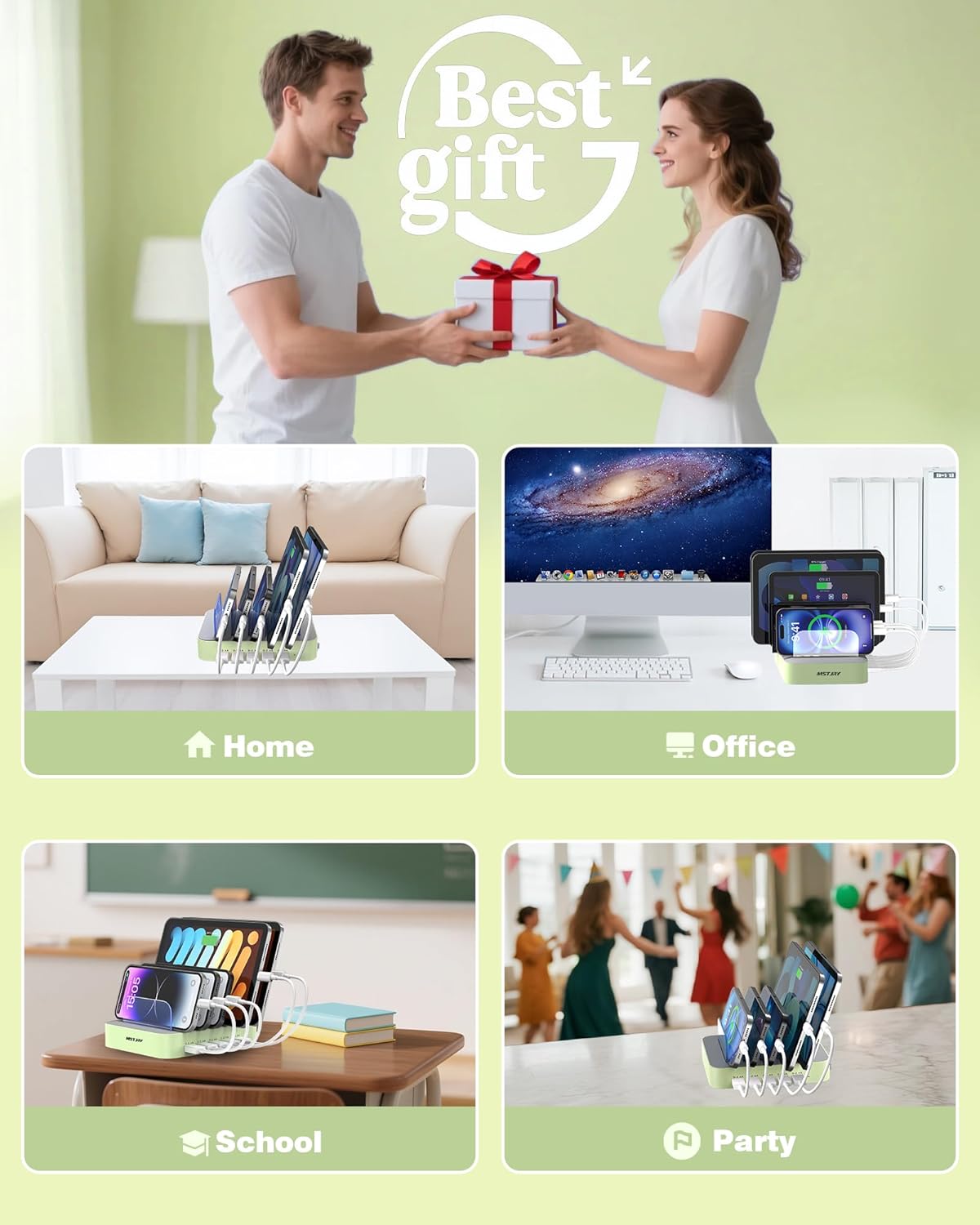 - 【Love by Families】This portable USB-A charger station is a great gift for your dads, moms, mother-in-law, father-in-law, sisters, brothers, coworkers, girlfriend, boyfriend. Charging stations can be used for your home, kitchen counter, desktop, nightstand, office, school, hotel, or traveling.