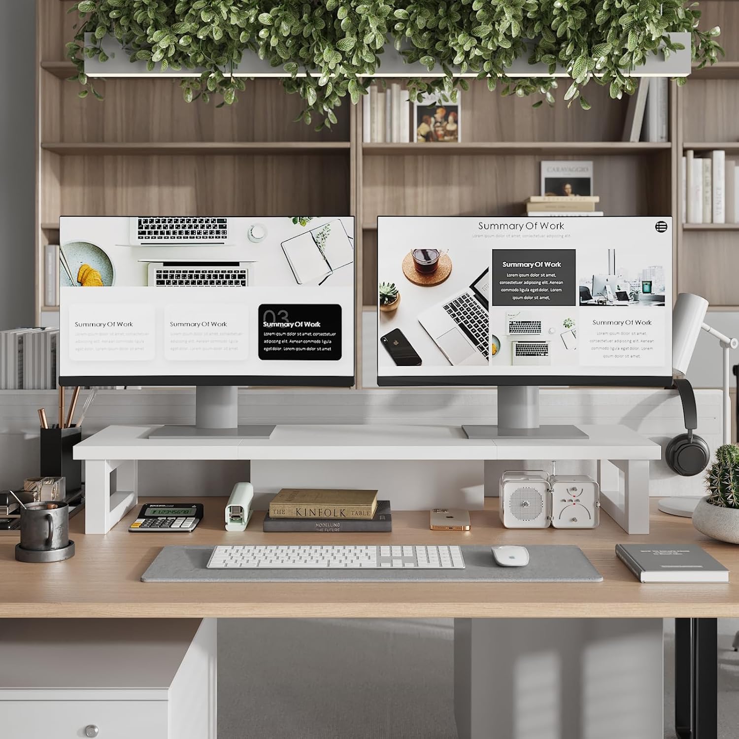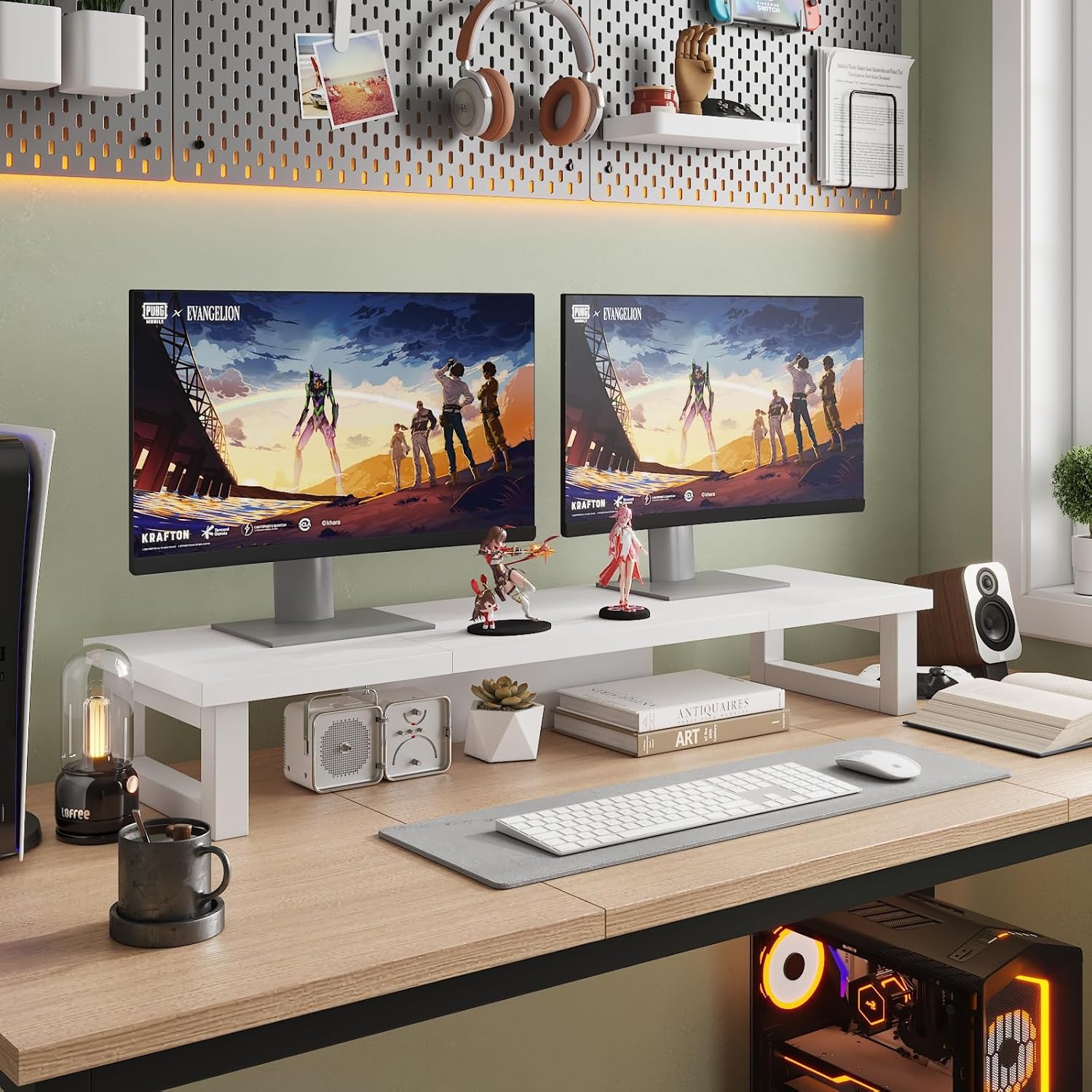 - 【Multifunctional Monitor Riser 】The monitor stand has powerful storage function of keeping the table clean.It can be used as a monitor stand riser, printer stand, laptop riser, or a TV stand, makeup, animals. Extra storage space underneath organize your office supplies.