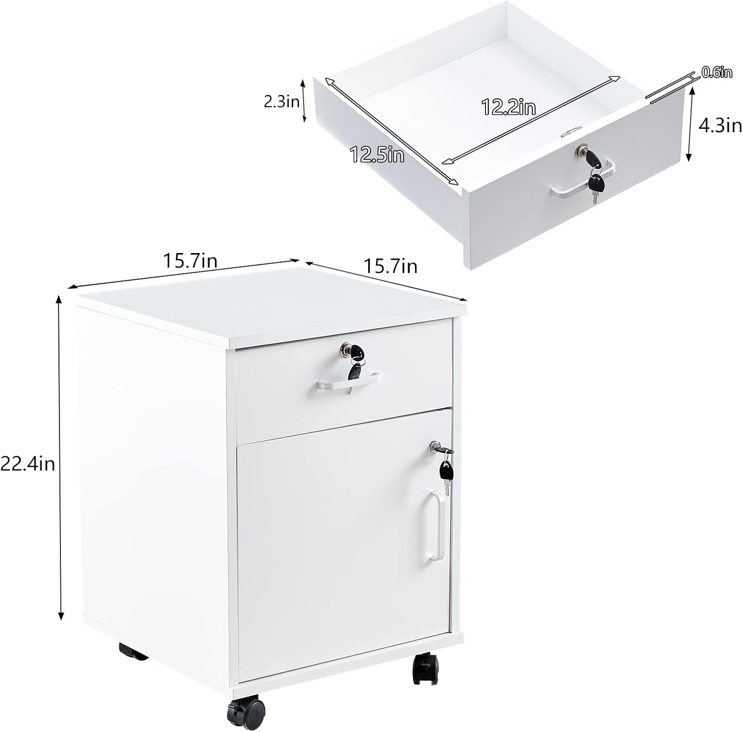 CLIPOP Rolling Storage Cabinet with Drawer, Home Office Cabinet with Lock, Under Desk Storage Cabinet for Home Office (White)