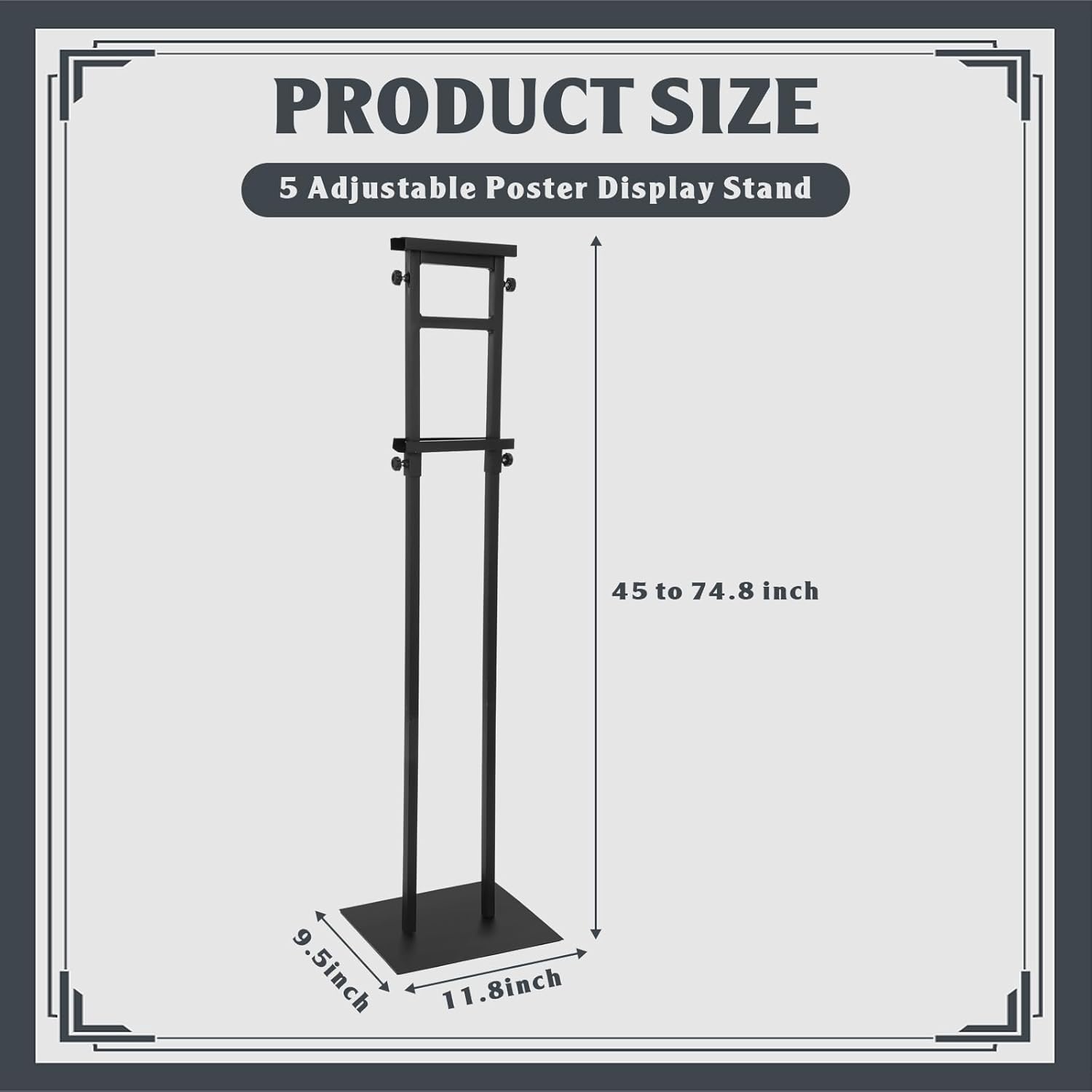 - Adjustable Height: by turning the knob easily and moving up and down the bracket conveniently, the height of this display poster board stand can be adjusted from 45 to 74.8 inches, which is suitable for 5-71 inches in height poster and meet different needs