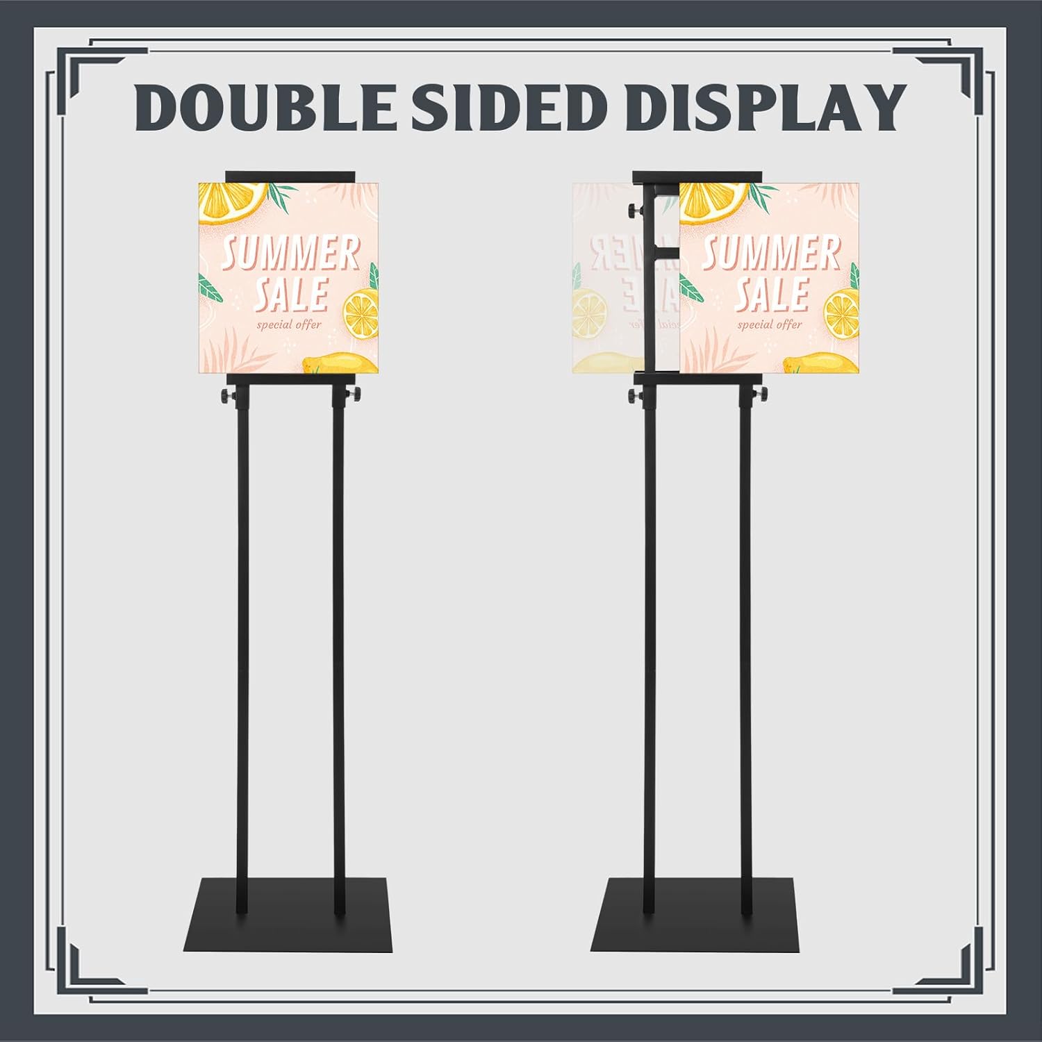 - Multiple Display: featuring a double sided KT board design, this sign holder allows you to showcase your content on both sides, attracting more attention and seizing opportunity; You can also hang a larger and wider size billboard by connecting 2 or more poster holders, increasing the opportunity to display products