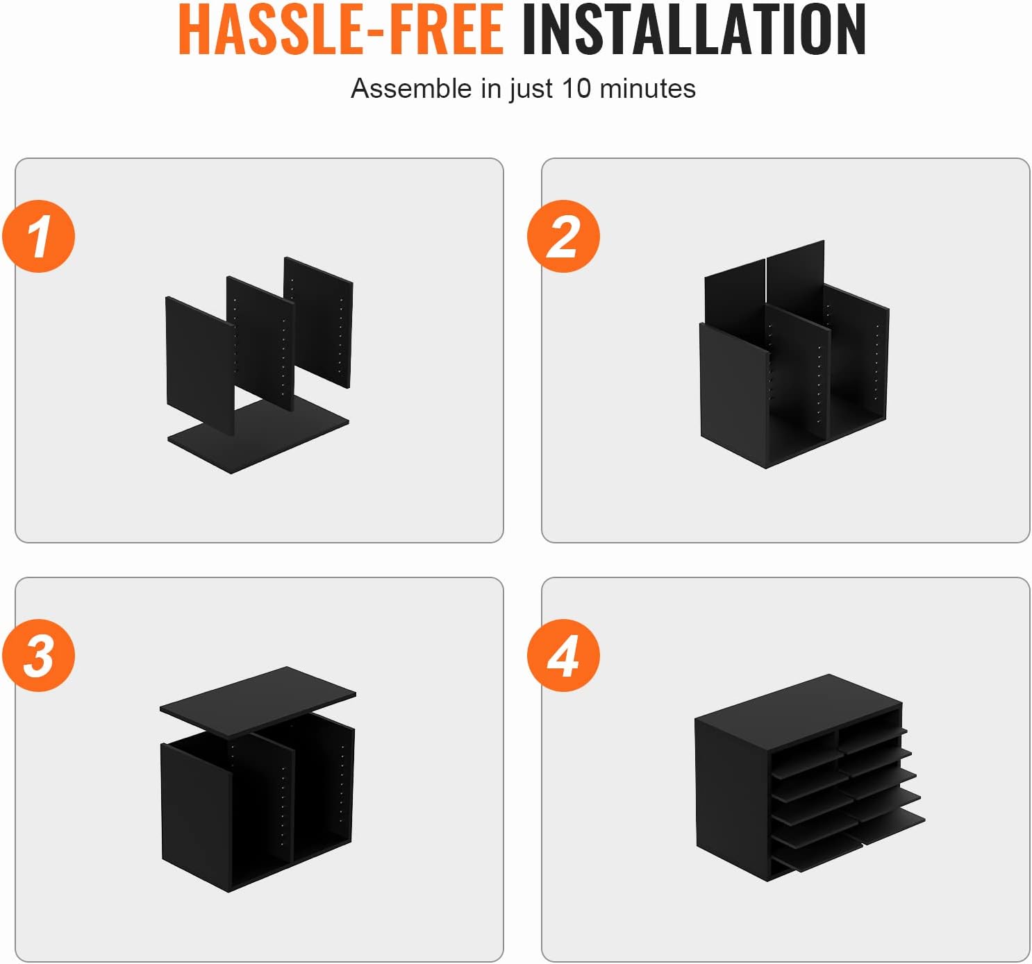 - Assemble in No Time: Our literature organizer sorter is incredibly easy to install, thanks to its simple panel design. With the included assembly instructions, you'll be guided through every step of the process, making it a breeze to complete the installation in just 10 minutes!