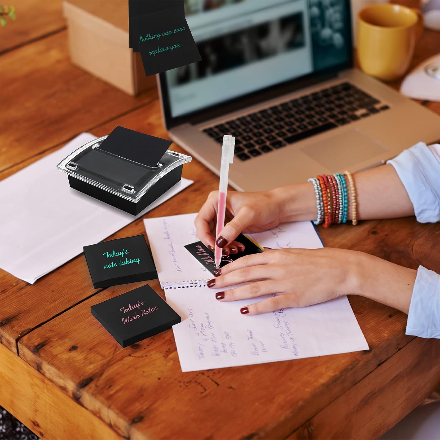 - Improve Your Work Efficiency: when you need to jot down your thoughts and to do lists, this lined sticky note and dispenser set can help you find the notepad much more quickly, reducing the stress and confusion of frantically looking for the notepad, and to some extent, improving your work efficiency