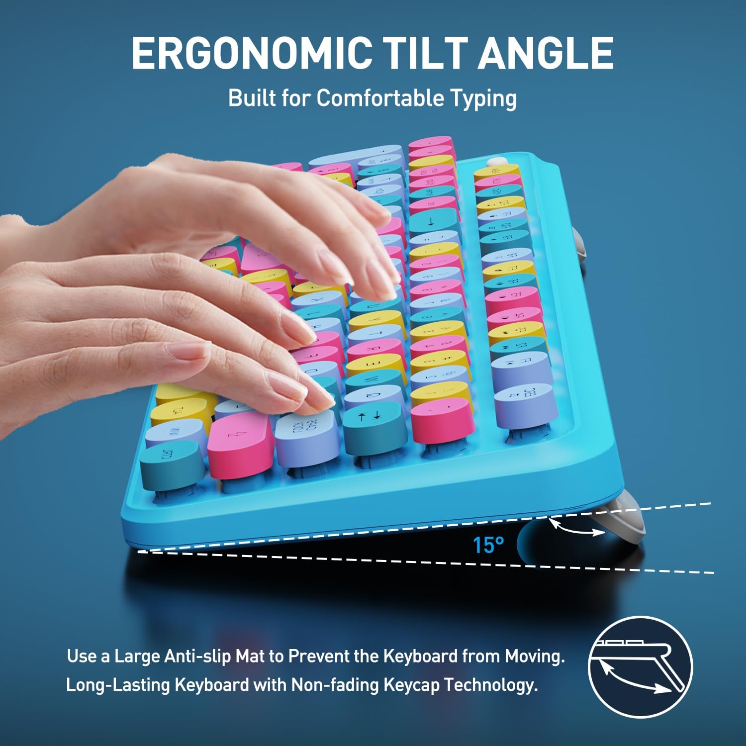 - 【 Wireless Keyboard Mouse Combo】The inspiration for these cute rounded keys comes from vintage typewriters offering you visual enjoyment and a retro feeling to type. With colorful key caps, make you be distinctive in the office and work full of fun.
