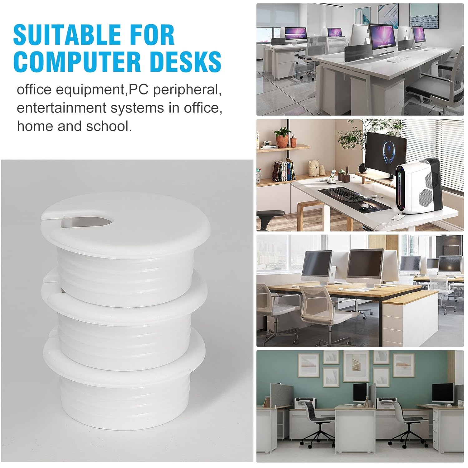 - VERSATILE APPLICATION -- Perfect for managing and concealing cables in desks, workstations, televisions, and entertainment systems. They can accommodate multiple cables and can be used in offices, homes, and workshops. Not only can they neatly manage cables, but also protect them from abrasion due to rough desk edges.