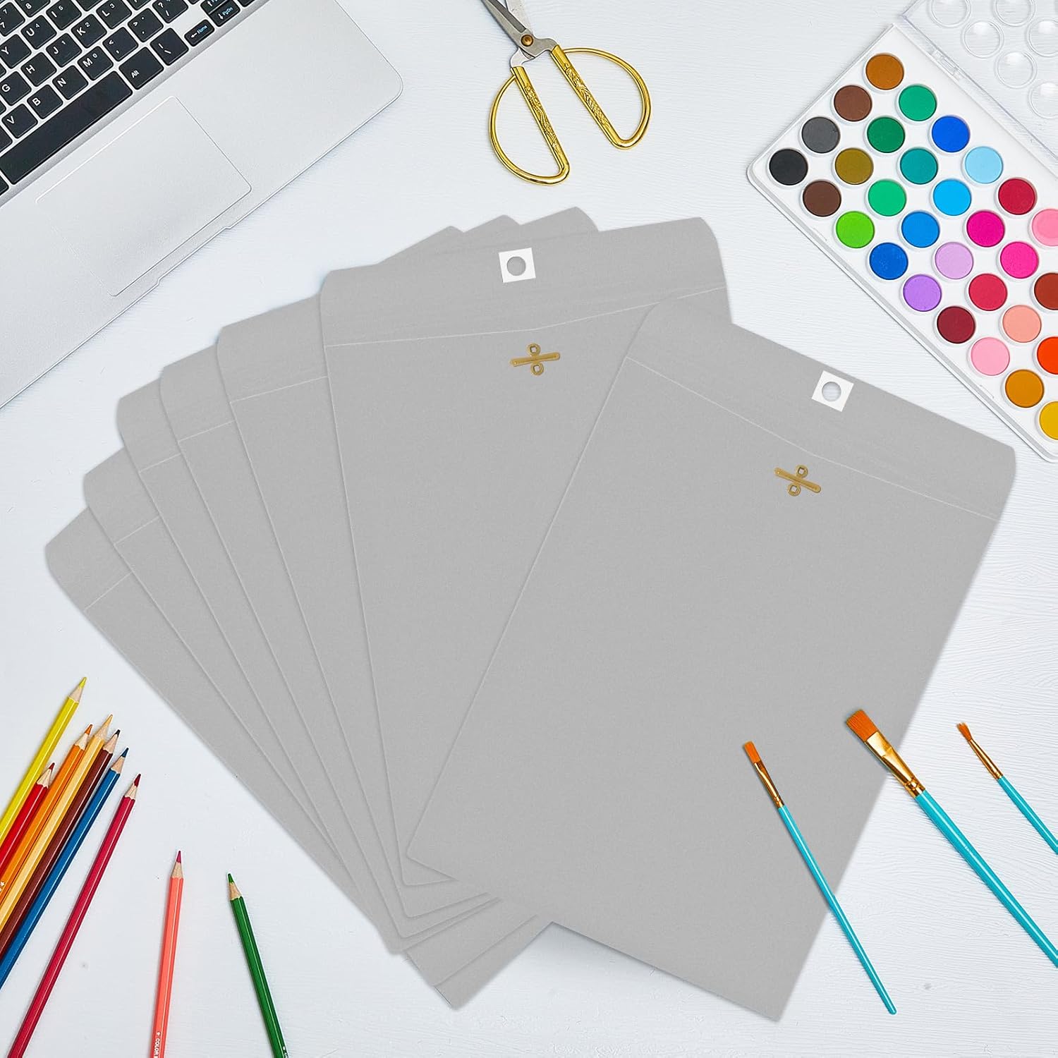 Geyee 100 Pcs Clasp Manilla Envelopes 9 x 12 Inch Gummed Colored Envelopes for Storing or Mailing for Home Office Business Supplies(Grey)