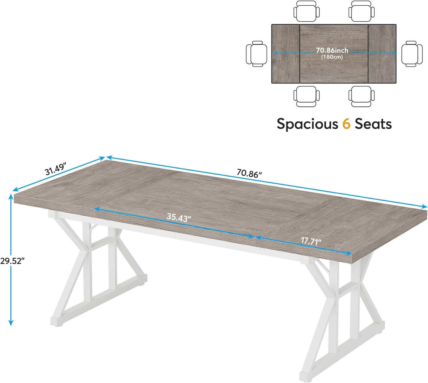 - [Upgrade Your Workstation]: 70.86” x 31.49” large desktop can easily accommodate your books, files, laptop, desk lamps, and other office accessories. The abundant underneath space makes your legs stretch freely without any obstacles, creating a relaxed working environment for you!