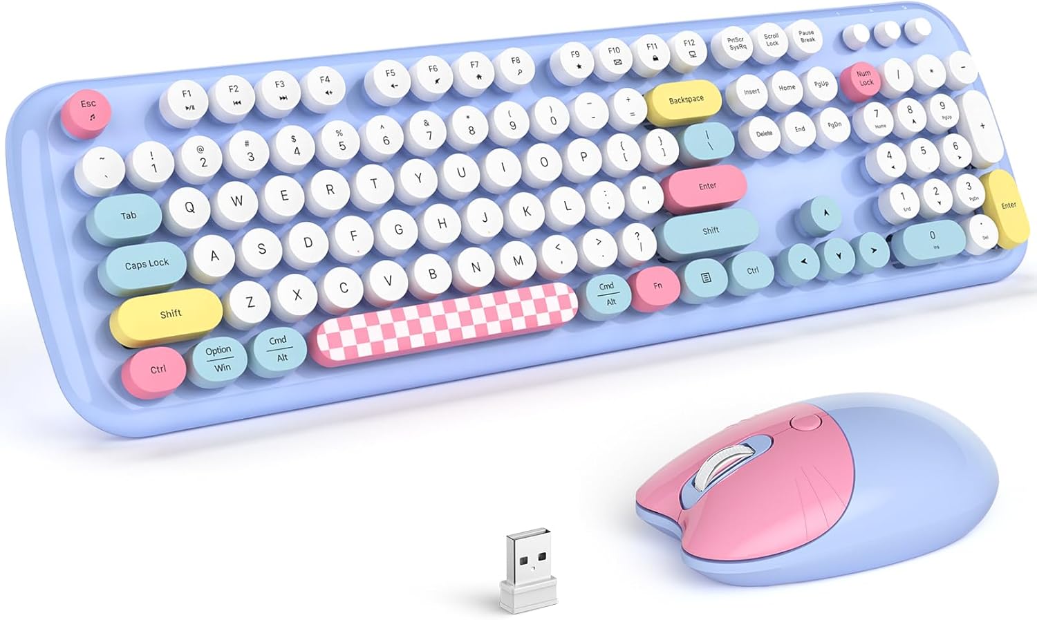 Wireless Keyboard and Mouse Combo, 2.4G Retro Typewriter Keyboard with Number Pad and Cute Ambidextrous Wireless Mouse for Computer Laptop