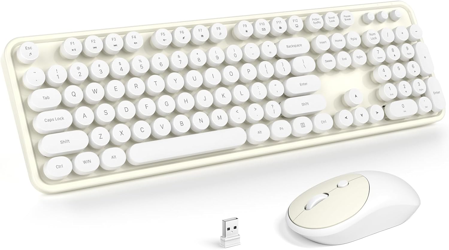 MOFII Wireless Keyboard and Mouse Combo, Computer Full Size 2.4G Plug and Play Wireless Typewriter Retro Round Keyboard and Mouse Set for Windows, Computer, Desktop, PC, Notebook - (Off White)