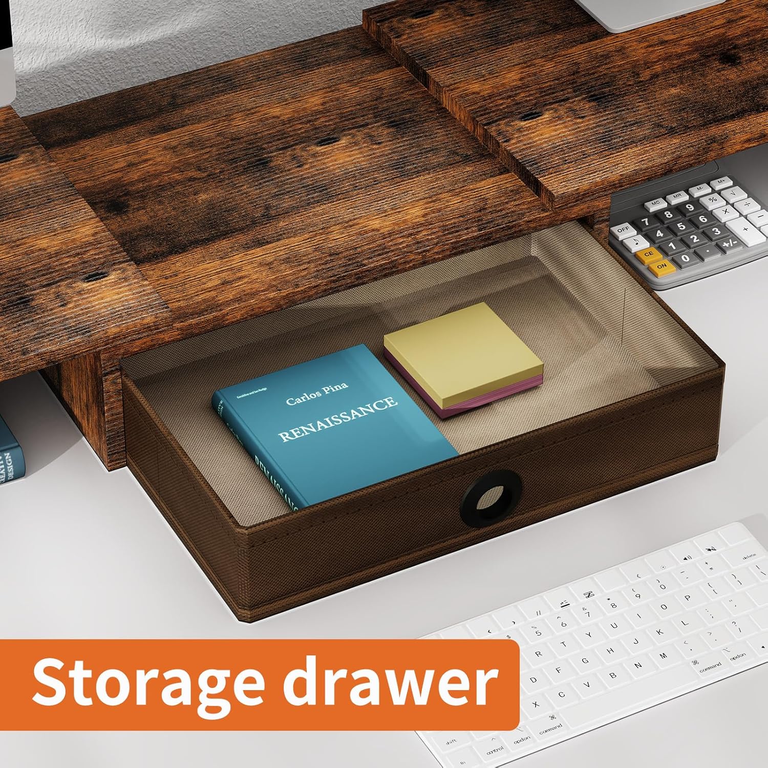 Dual Monitor Stand Riser with Drawer-Adjustable Length and Angle, Monitor Stand Riser for 2 Monitors, Desktop Organizer Stand for Computer/Laptop/PC/Printer (Rust Brown)