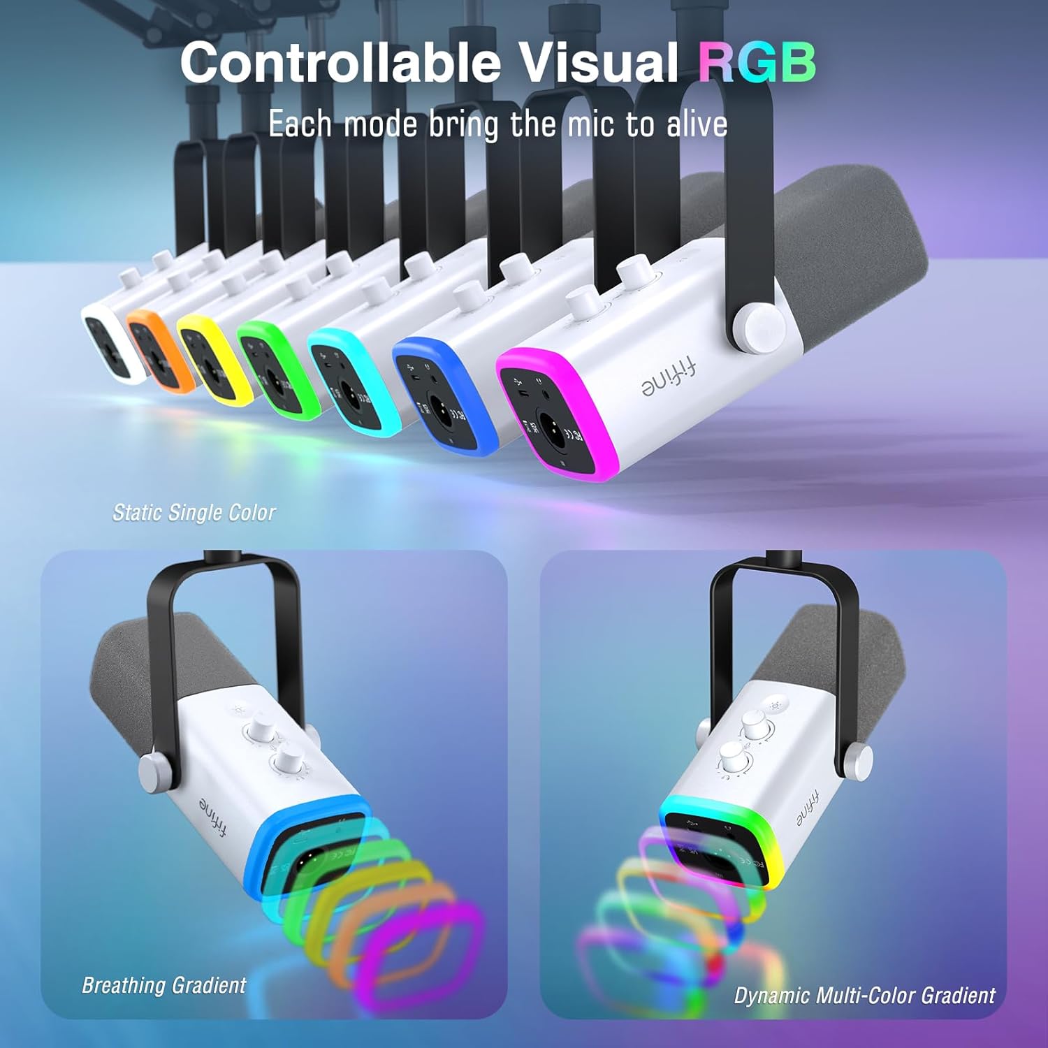 - [Expressive RGB Illumination] Take your gaming setup to the next level with the controllable RGB lighting of the USB gaming microphone. Create stunning and unique RGB color patterns that resonate with your gaming scenarios, allowing you to showcase your personal style and immerse yourself in a visually striking gaming atmosphere.