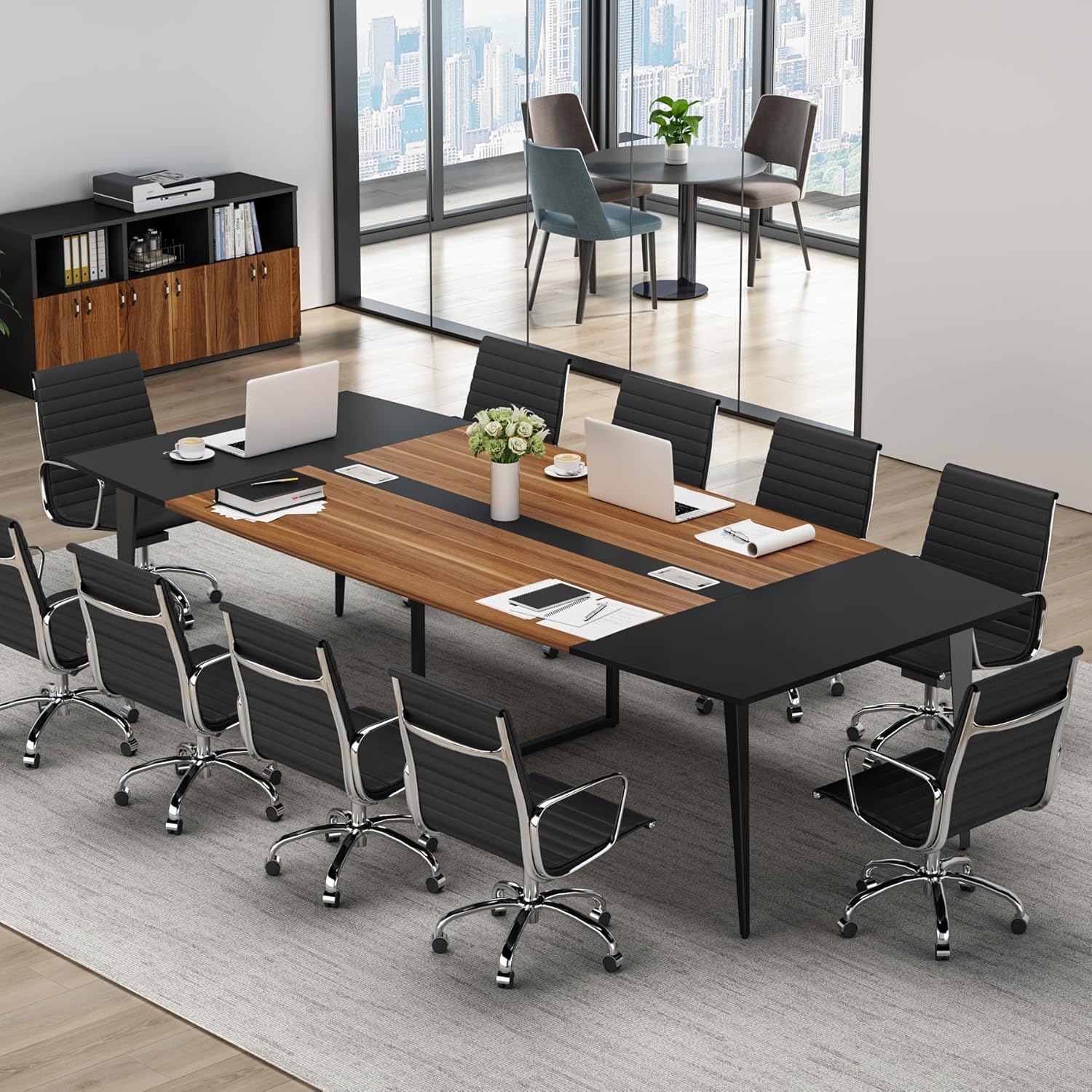 - 【Modern & Natural Style】Comes in a beautiful walnut and black colorway, our conference table has beautiful appearance. It is perfect for your contemporary private or open-concept office space. Meanwhile,the boat curve design enables your team to see everyone around the table