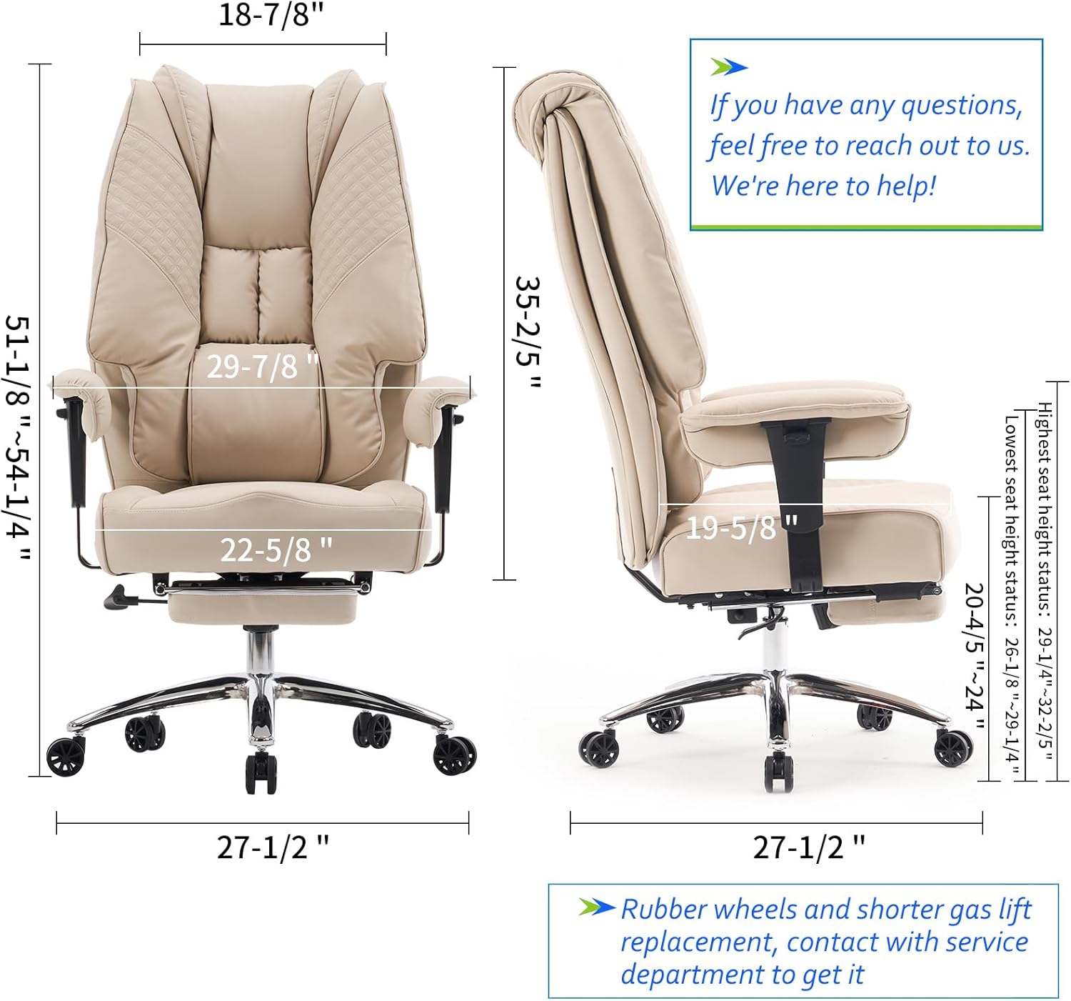 Big and Tall Office Chair 400lbs Wide Seat, Leather High Back Executive Office Chair with Foot Rest, Ergonomic Chairs Lumbar Support for Lower Back Pain Relief (Beige)