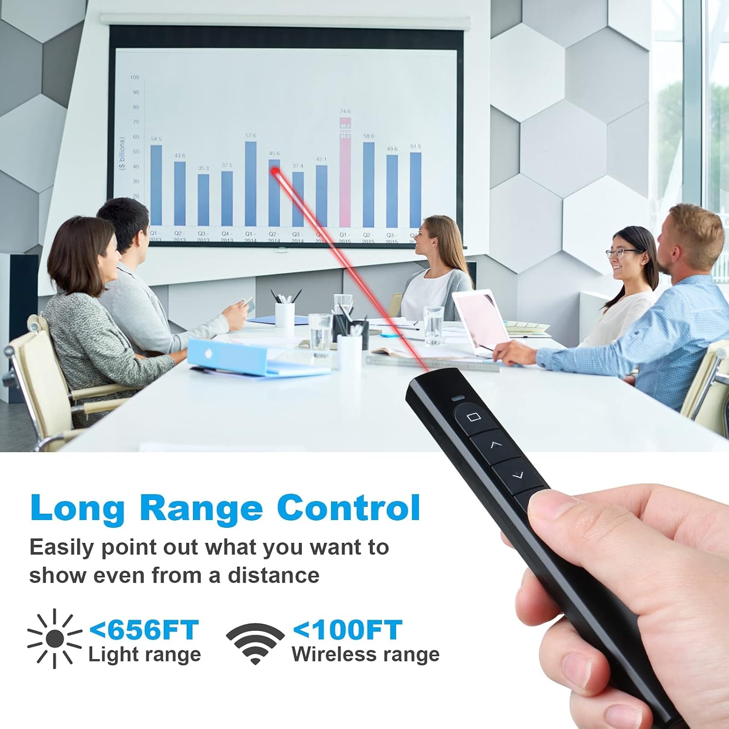 - [100 FT Long Control Range] UBUYONE Wireless Presenter remote is equipped with top-grade microchip to ensure a real 100M/328FT long control distance, Red light range: 2