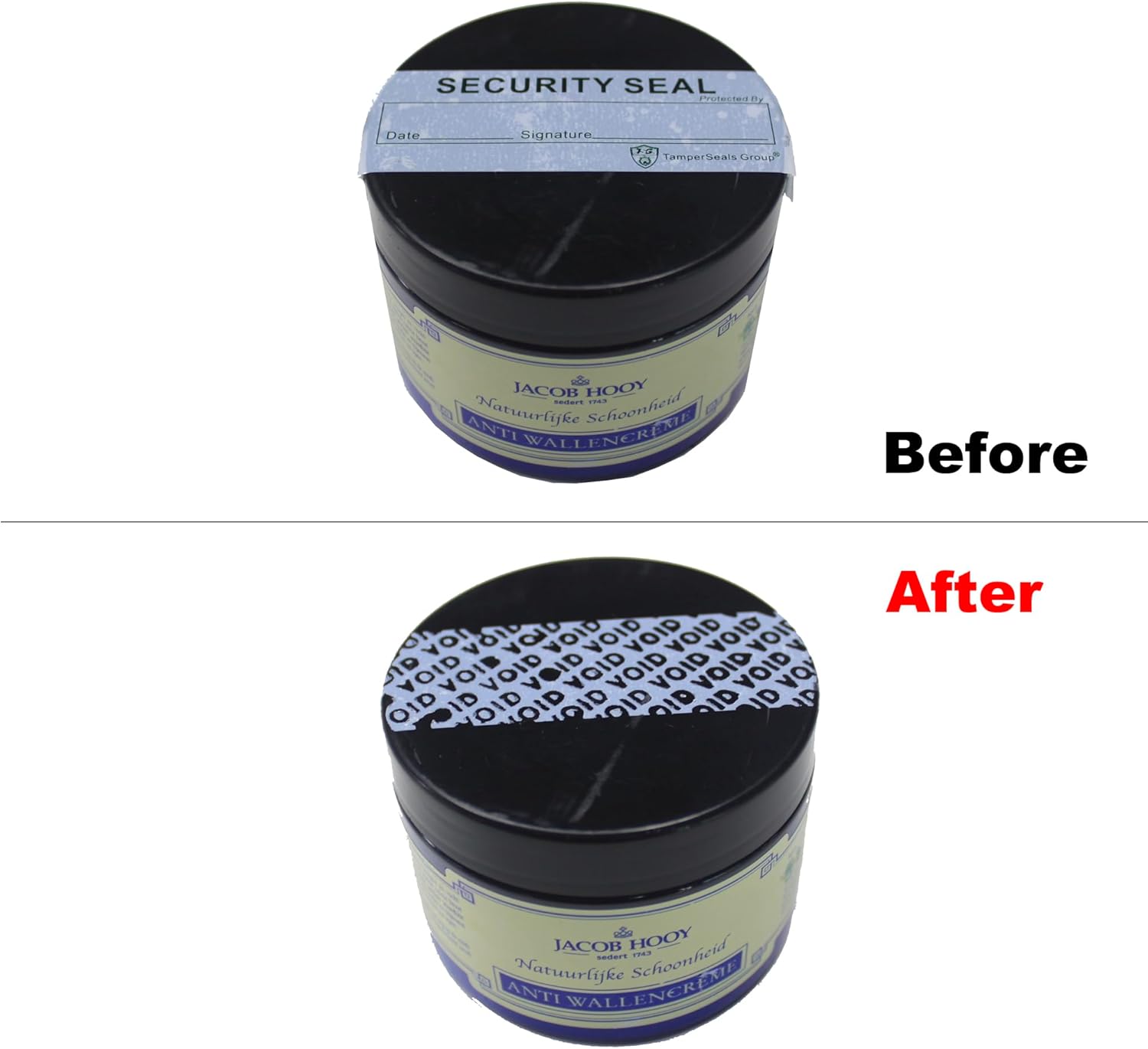 - 【Keep Your Assets Secured】: Used to seal non-reusable packages, traces of security print or pattern (e.g. “VOID/OPEN”) will be partially transferred to the carton/article surface if these tamper evident labels are removed.