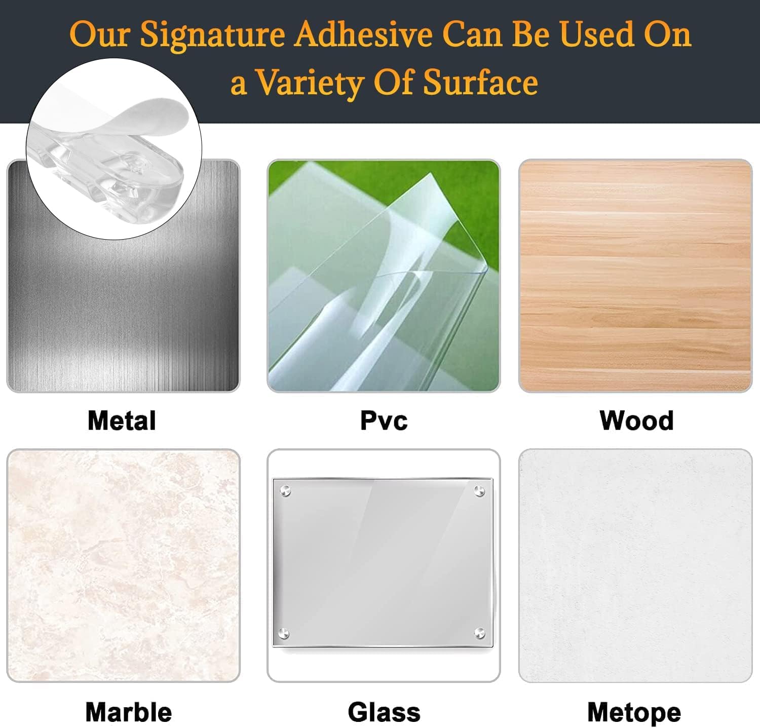 - 🔷The double-faced adhesive is very firm and long-lasting and works well in smooth and clean the surface, such as marble, plastic, wood, glass, metal, and rubber.