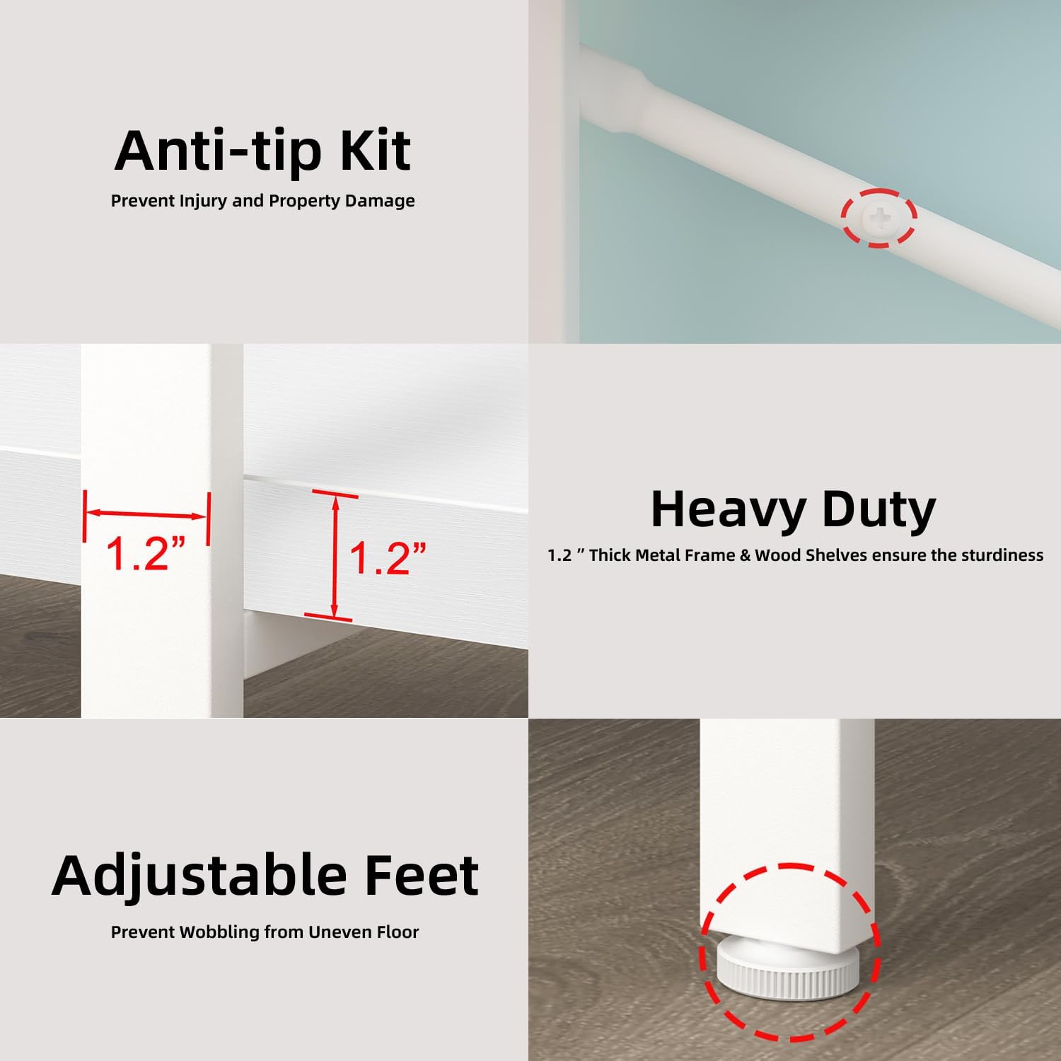 - 【Anti-Tip Kit and Easy Assembly】: Remember to install the anti-tip kit on the wall to enhance stability and reduce the risk of accidents with this industrial 4 tier bookcase. Smart design and all the included tools make assembling this white 4 shelf bookshelves and bookcases a hassle-free task.