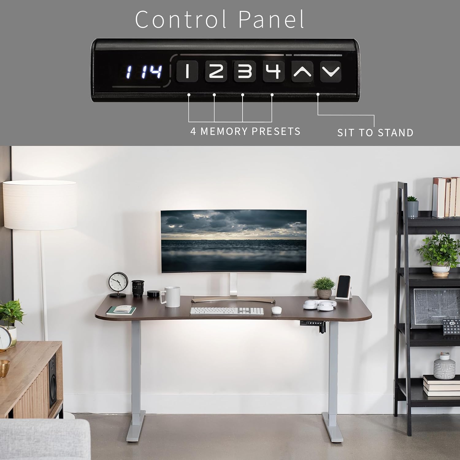 VIVO Electric 63 x 32 in Standing Desk, Memory Height Adjustment, 1B Series, Dark Walnut Top Gray Frame, DESK-KIT-1G1D