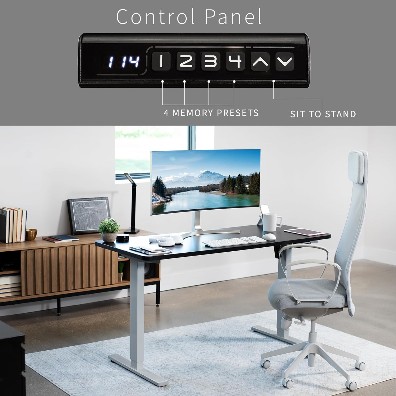 VIVO Electric 60 x 24 in Standing Desk, Memory Height Adjustment, 1B Series, One-Piece Black Top, Gray Frame, DESK-KIT-1G6B