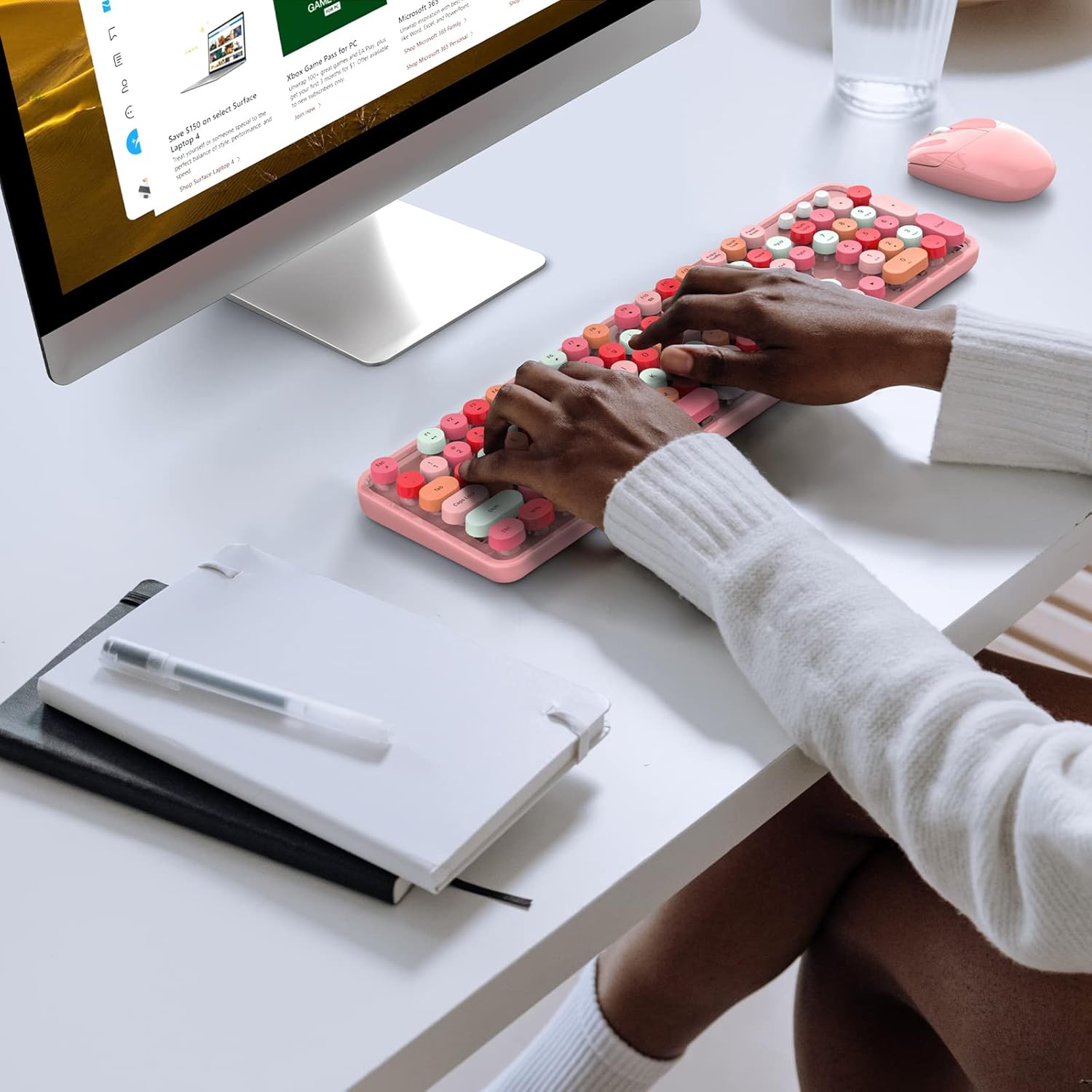- 【Cute Wireless Keyboard】The inspiration for these cute rounded keys comes from vintage typewriters offering you visual enjoyment and a retro feeling to type. With colorful key caps, make you be distinctive in the office and work full of fun.