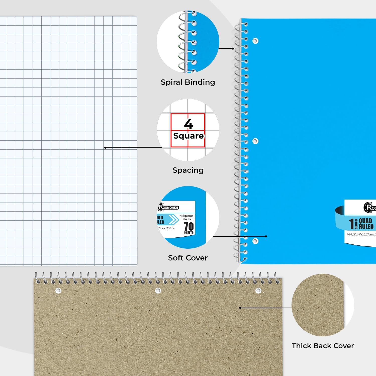 - GET ORGANIZED: Our 1 Subject Spiral Graph Ruled Notebooks are perfect for work and school and can also record your daily life or the interesting things during your travel. Rosmonde spiral journals fully meet our daily needs. Each notebook features an assortment of fun, bright colors that make them easy to identify, so you can quickly find the notebook you need.