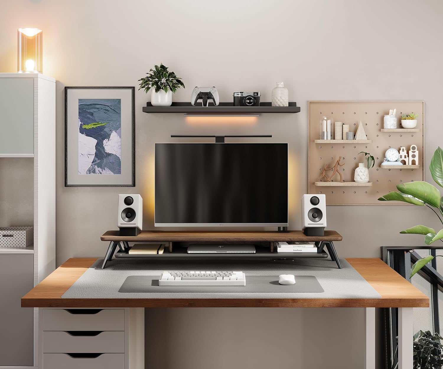 - 【2 TIER DESKTOP ORGANIZER】At longest 42.5inch wide,longer size with more space. This laptop riser is big enough to support two monitors. It has 1 universal device holder slot and 3 high capacity compartments. You can easily store your office accessories & supplies under your monitor stand to keep your desktop tidy. Our monitor stand rise comes with cable management slots that can make your cord stay organized.