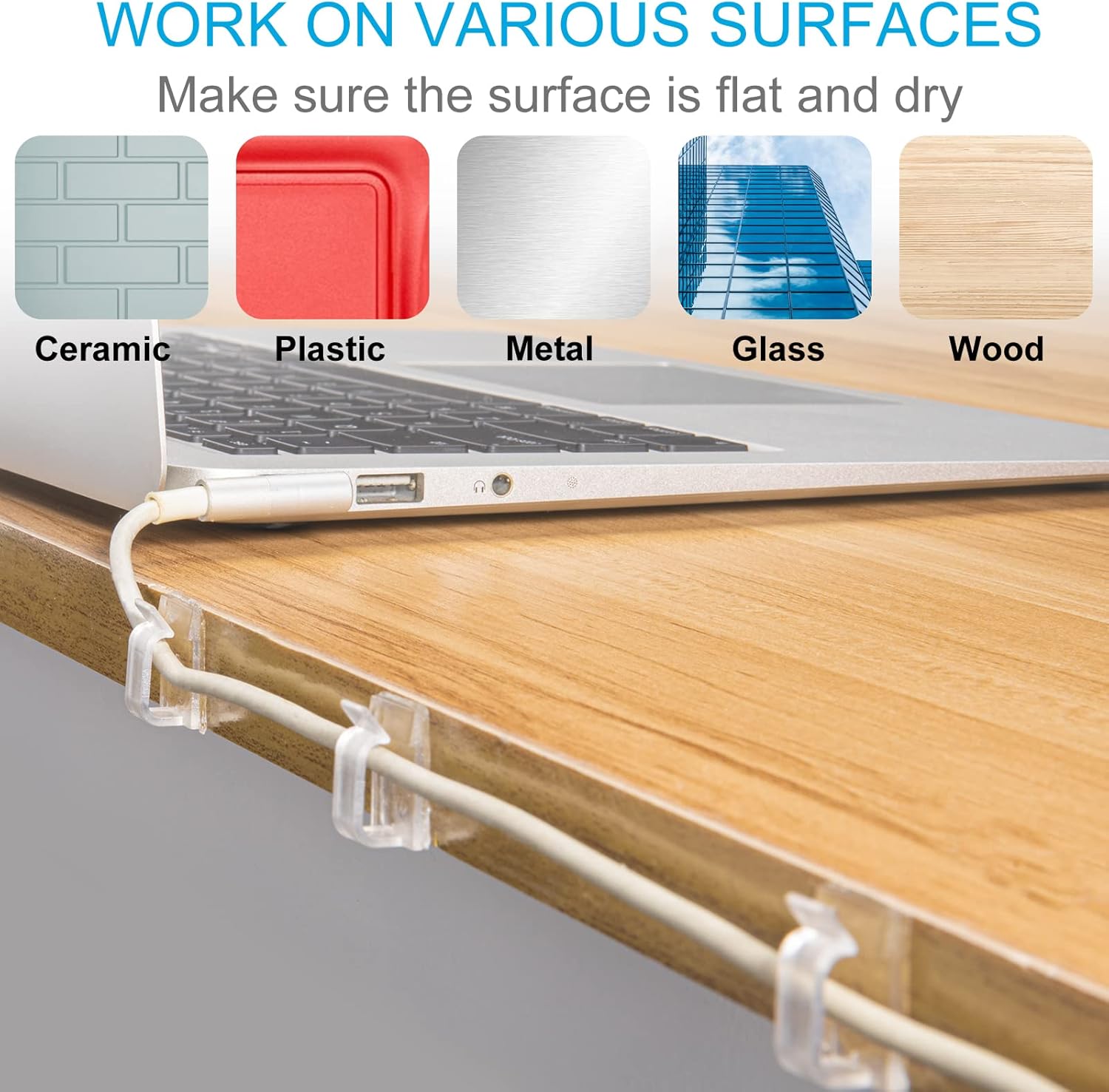- Note before Use: Make sure to clean the mounting surface with alcohol pads before you use the cord organizer clips, stick it on and press firmly for 30 seconds, and use them after 24 hours for maximum adhesion.