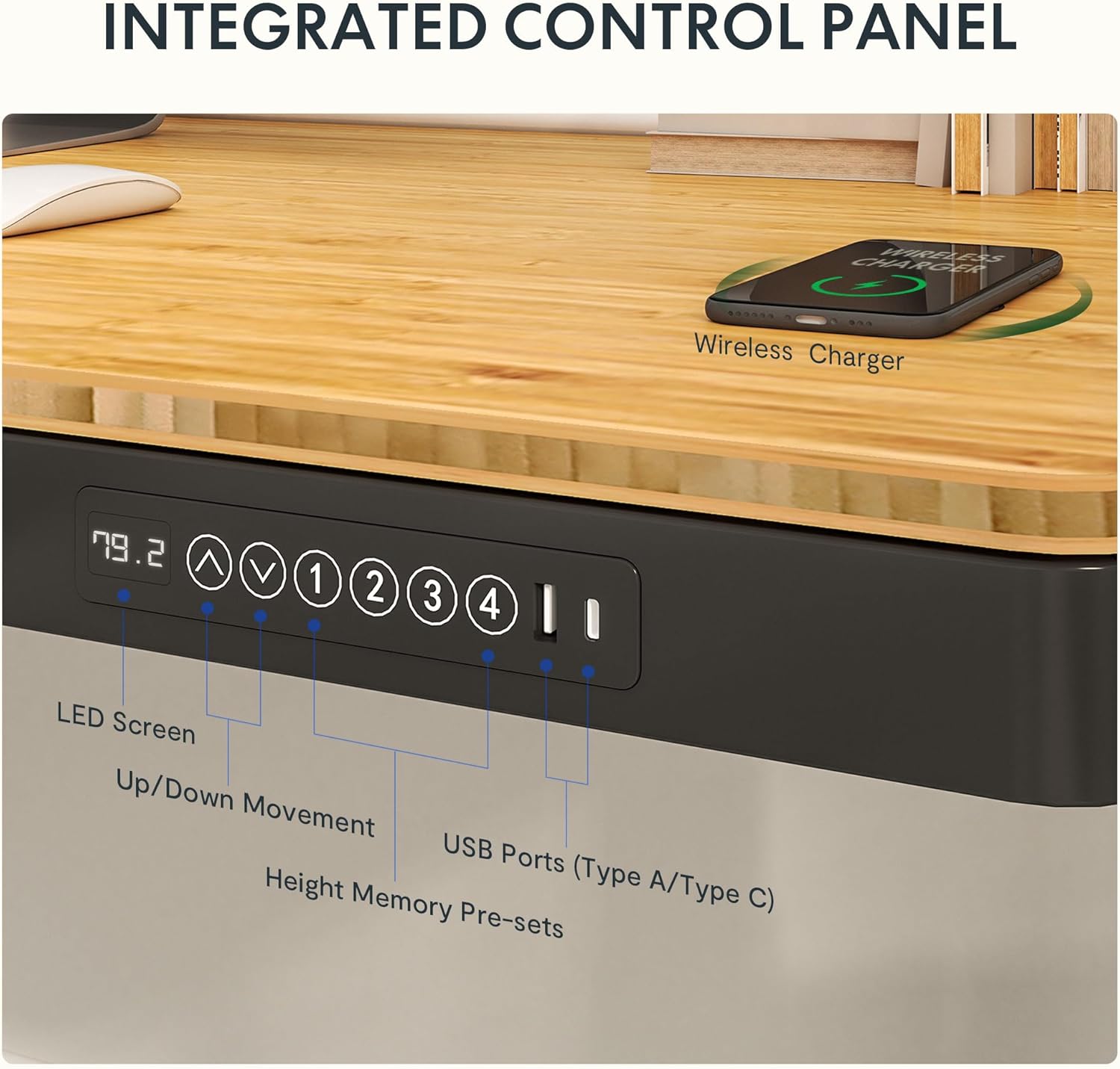 - Embedded Multiple Functions: Easily save multiple with four programmable height presets, embedded USB charging ports (1X USB Type-C output: 45W; Type-A output: 18W) are in the desk for a wide variety of electronic device compatibility. (Note: USB ports may pause charging while adjusting desk height)