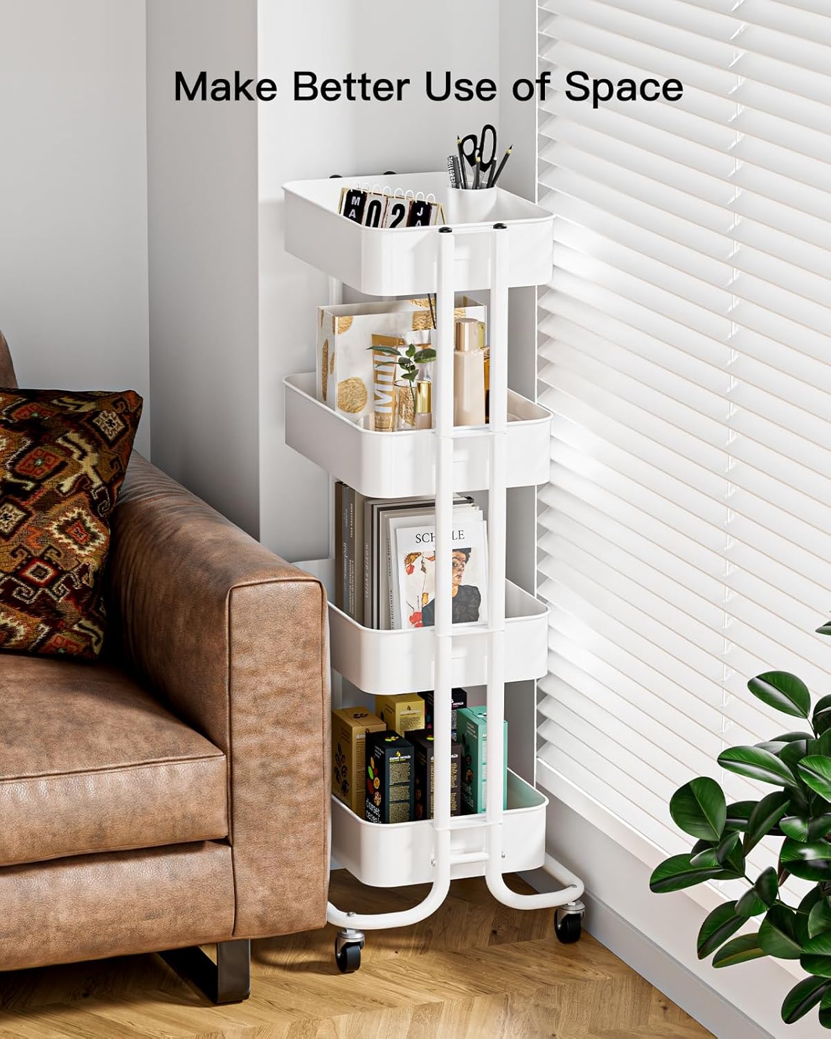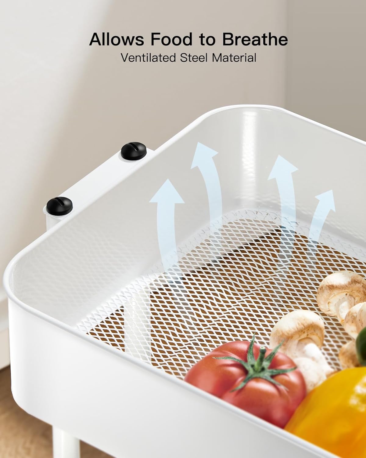 - Considerate Design:Two wheels are equipped with locks to keep the storage utility cart firmly in place, a great feature for families with children and pets. The 4 tier rolling cart is designed with steel mesh baskets for better airflow to keep items such as vegetables and fruit dry. Each utility craft cart basket of this utility cart is deep so that your storage stays in place, even if it is round-shaped or prone to shifting during movement.