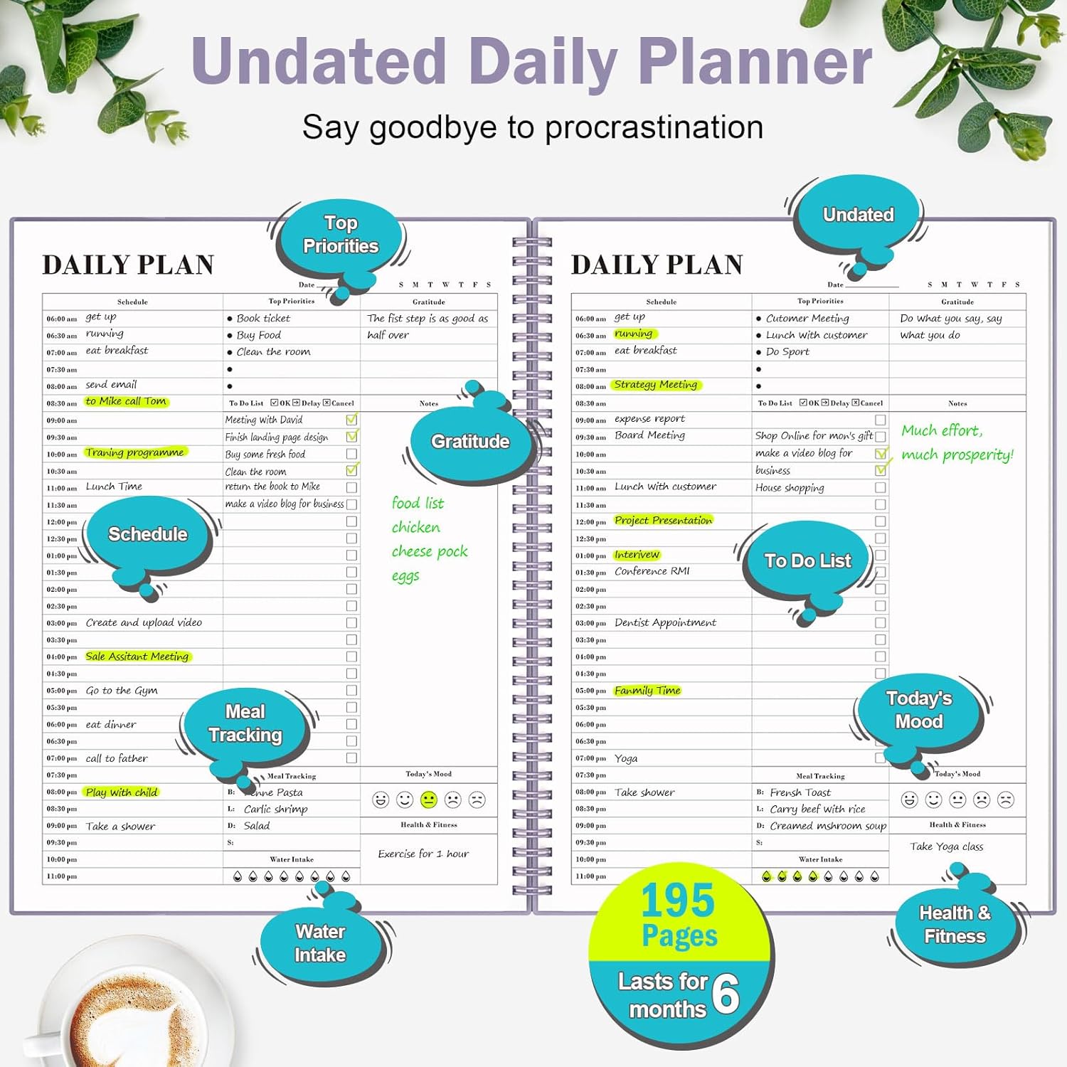 - Get Closer to Your Goals: This undated planner empowers you to track every appointment, set and achieve your top goals, and tackle tasks efficiently. Whether you're a business professional, college student, or teacher, this organizer planner is the perfect companion to help you do more, achieve more, and save valuable time.