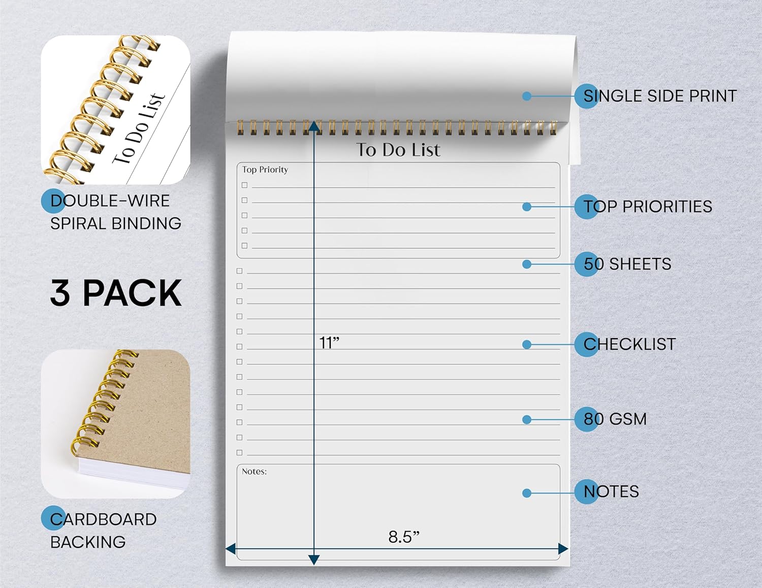 - DOUBLE-WIRE SPIRAL BINDING - Tear off sheets as needed or keep them intact to be able to look back on your prior tasks. Whether you're at your desk, in a meeting, or on the go, your notepad is ready for you to use as you see fit.