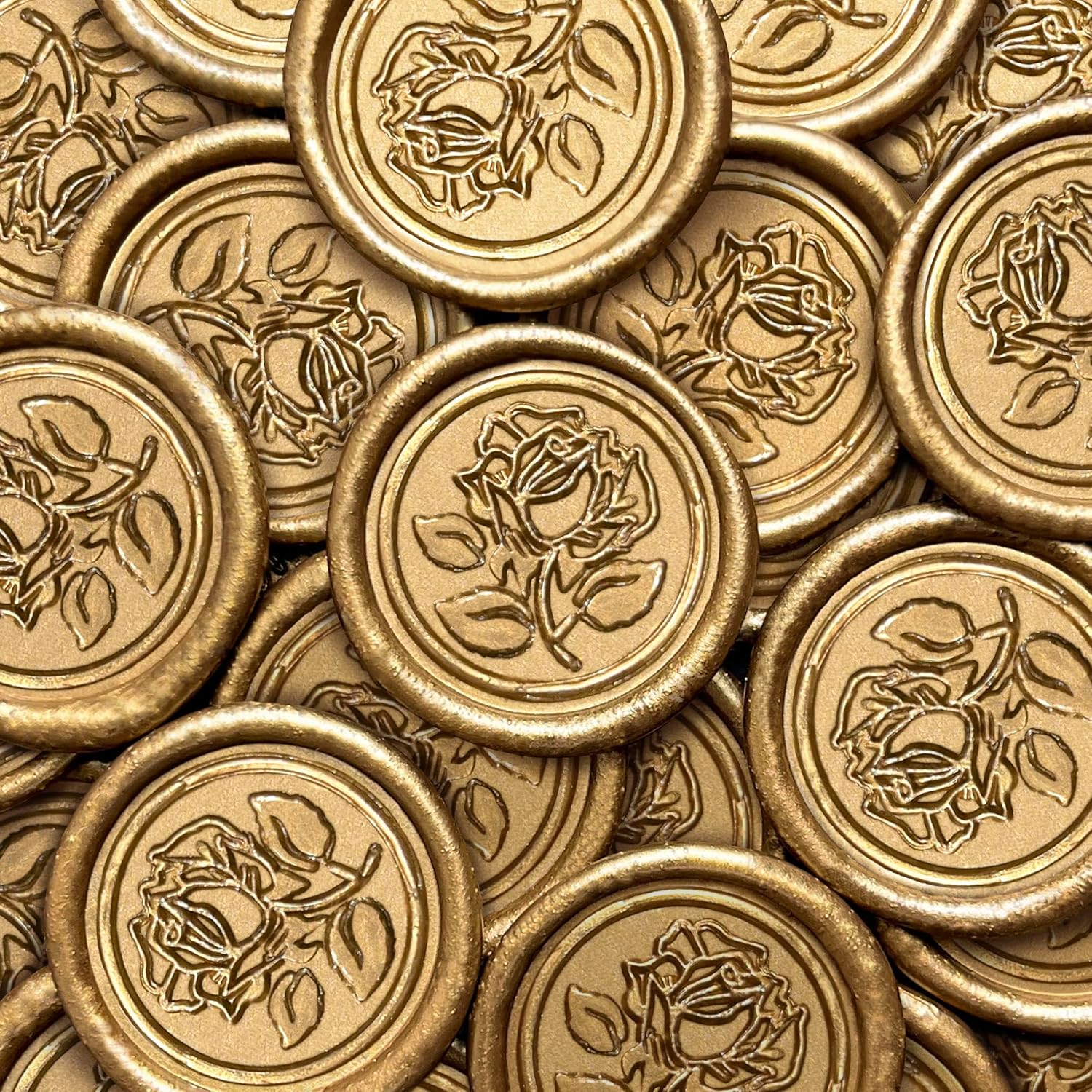 - EXQUISITE PATTERN: Vintage metal texture highlights your status, the lights will present an elegant sheen, raised delicate Rose Style pattern gives a three-dimensional and gorgeous feeling, each adhesive wax seal stickers is a unique seal, will definitely add a dignified and luxurious impression to your invitations.
