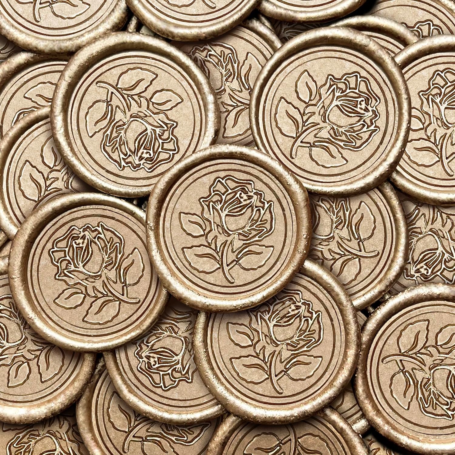 100Pcs Wax Seal Stickers Handmade Envelope Seals Self Adhesive Wax Stickers for Wedding Party Invitations, Envelope, Gift Wrap, Christmas(Rose Style, Champagne Gold)