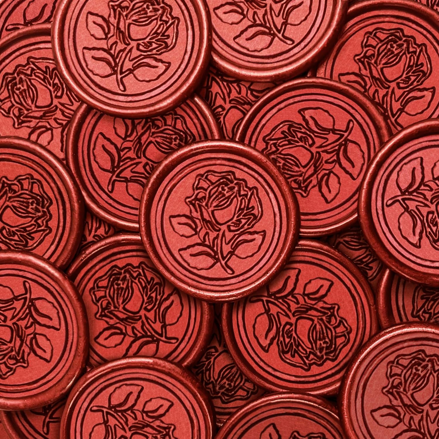 - PACKAGE CONTENT:You will get 100pcs Rose Style , wax seal sticker made by pure hand, the wax seal sticker is 1.18 inches/30 mm in diameter, each Rose wax seal has almost the same size of adhesive on the back of the sticker, perfect for mailing, you don't need to worry about the strength of the adhesive at all.