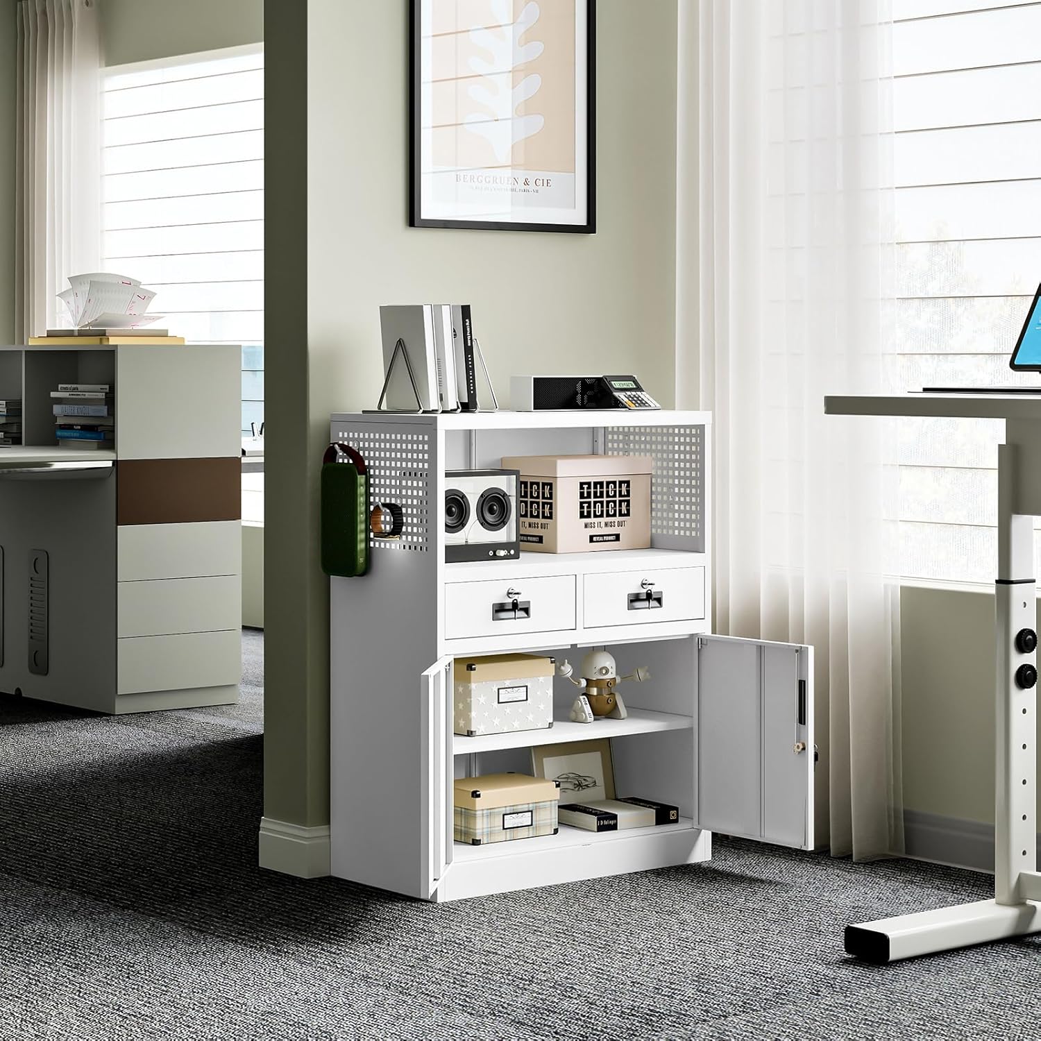- 『SCENE DIVERSIFICATION』: The lower layer of a metal storage cabinet with drawers can store various sizes of documents, books, or other office and household tools. Due to its ability to store various items, it can be widely used in offices, homes, garages, archives, or any place that requires safe storage space.
