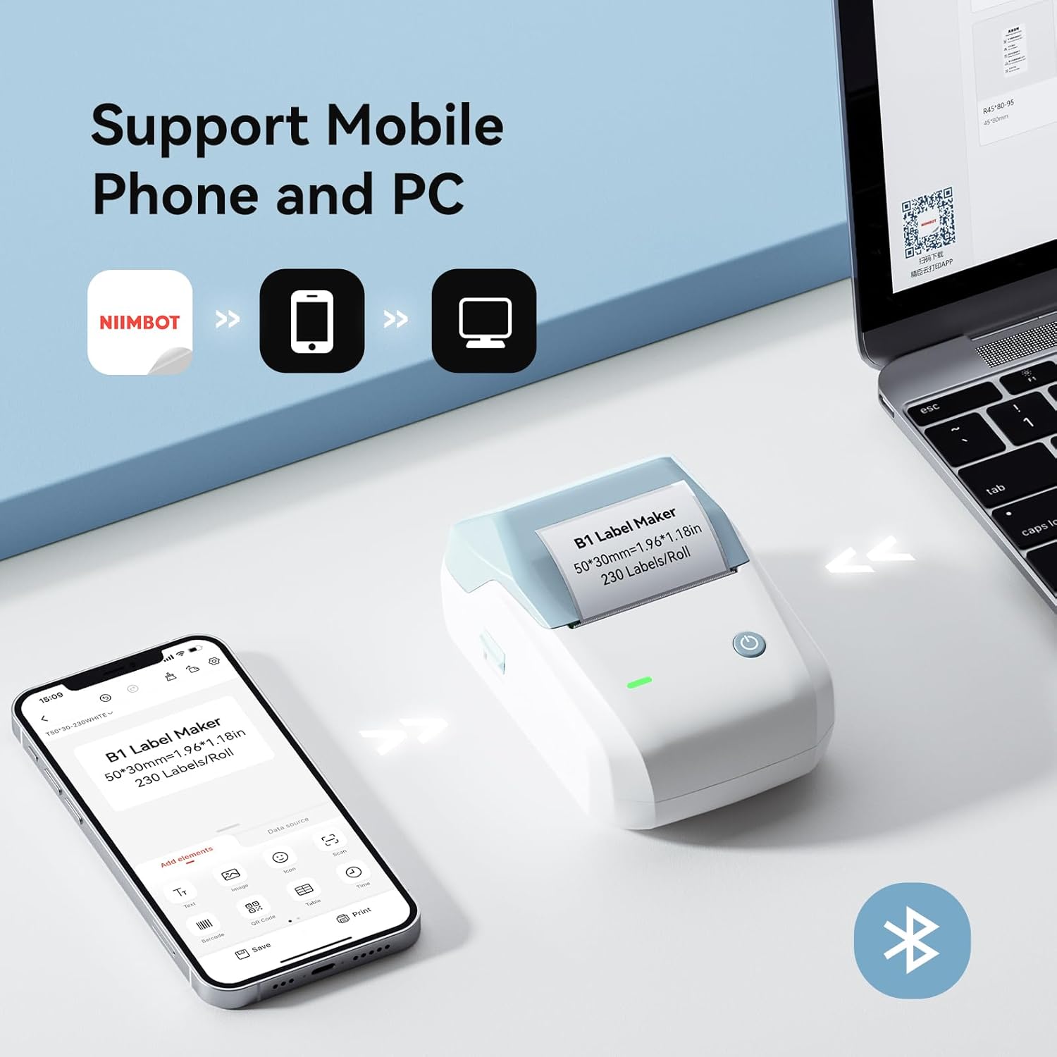 NIIMBOT B1 Label Maker Machine with Tape, 2 Inch Portable Sticker Printer for Home School & Small Business, Compatible with Phones & PC, Blue White