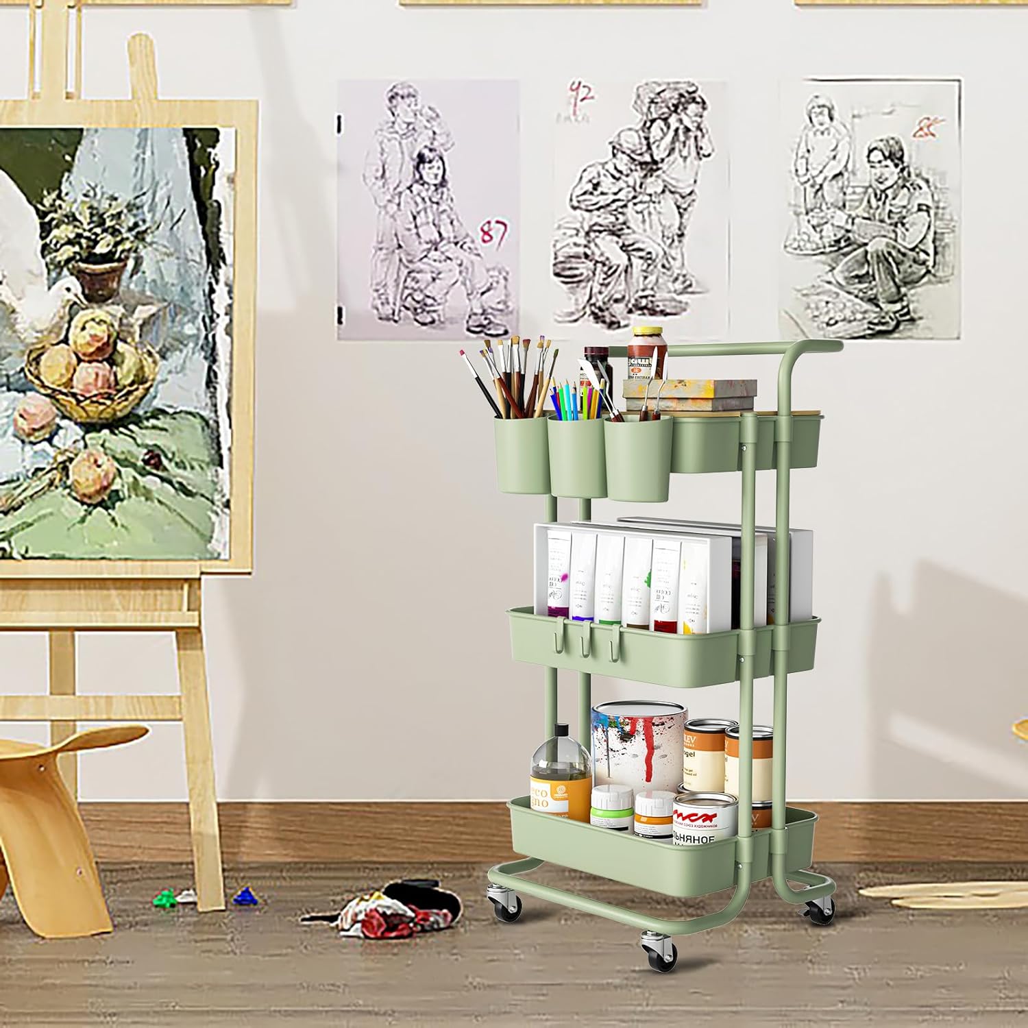 - 3 Tier Detachable Multifunctional Metal Rolling Cart with Metal handle,3 Hanging Cups,3 Hooks,1 Plank , 3 Plastic Storage Basket and 4 wheels including 2 Lockable Casters and 2 normal wheels. 3 tier rolling cart green, 3 drawer storage organizer green, 3 tier shelf green, 3 tier cart green, 3 tier storage organizer green, 3 tiered rolling cart green, 3 tier rolling cart metal green, 3 tier drawer organizer green, 3 tier metal rolling cart green, 3 tier cart with wheels green,