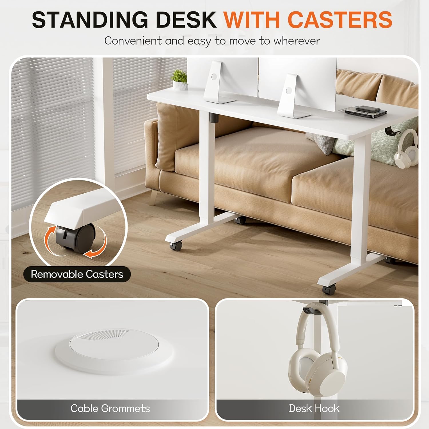 Furmax Electric Standing Desk, 47 x 24 Inches Height Adjustable Desk with Removable Casters, Home Office Computer Desk (White)