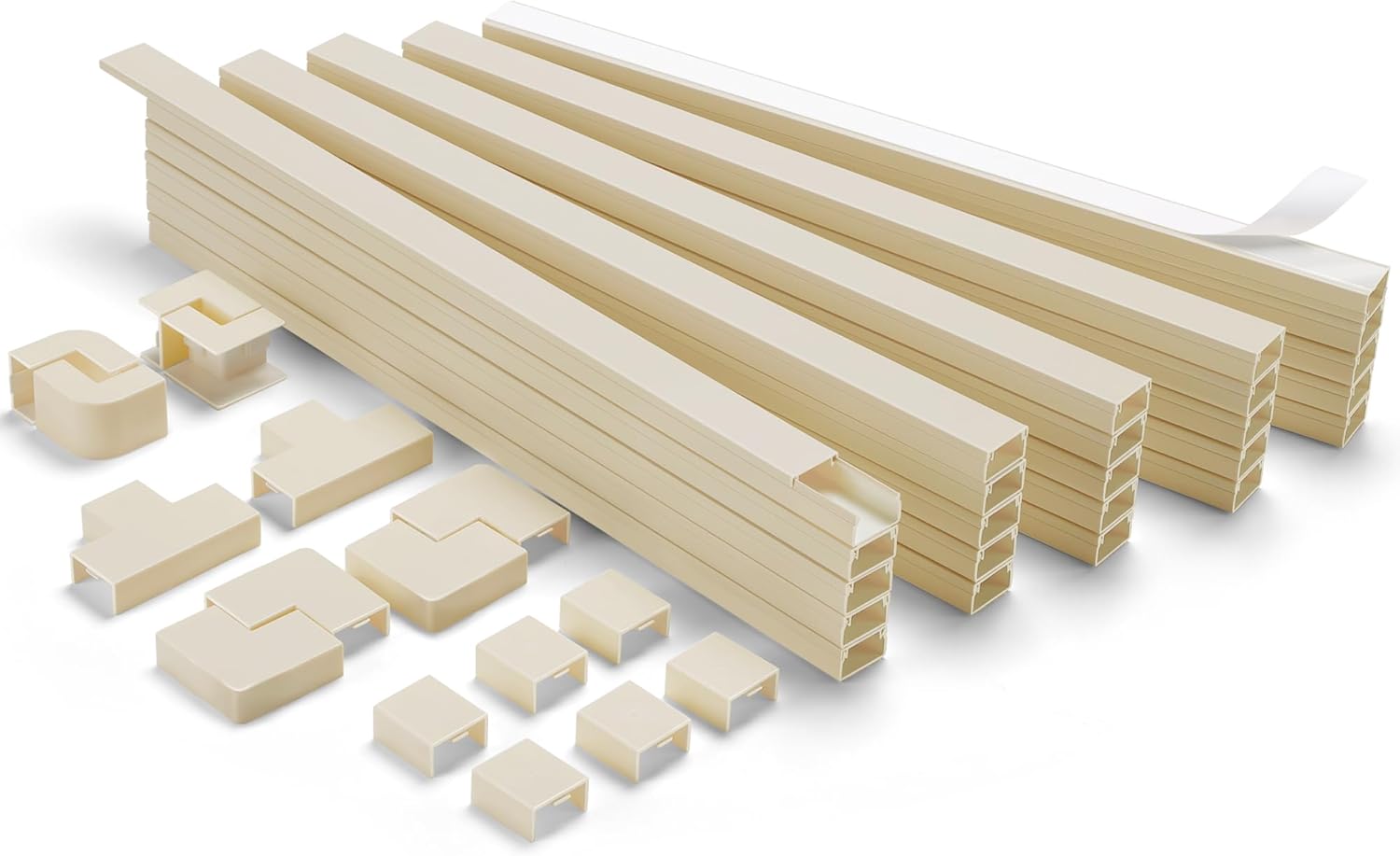 - Simple to install: Peel off the self-adhesive backing and conceal cords in the wall 25 individual wire channels, enough length to meet your needs. It has a smooth cutting surface, and can be easily installed without accessories for a seamless connection. You can also use the accessories as connections and extend your installation range to hide corners or cable nooks.